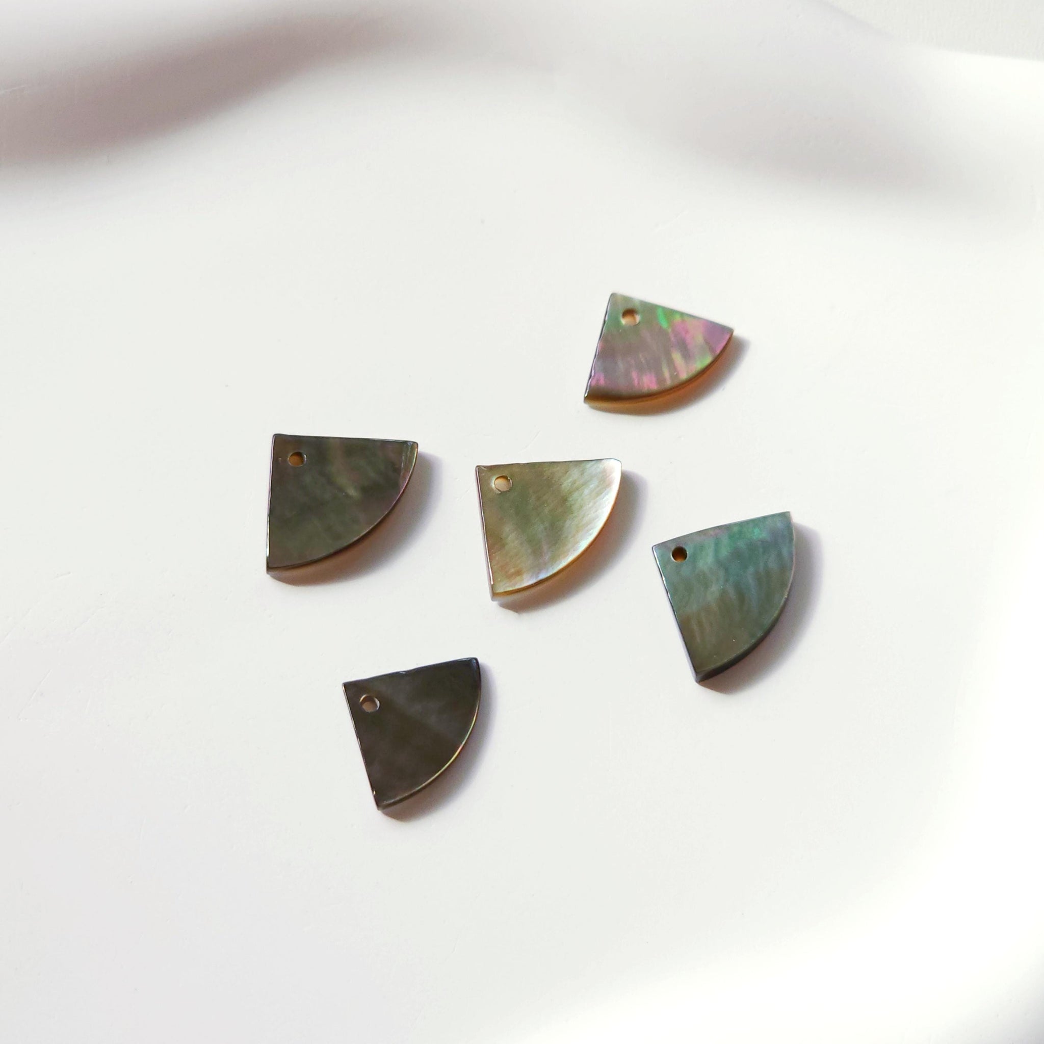 Fan Shape Black Mother-of-Pearl, MOP Shell Pendant, Engraved Black Nacre, Shell Charm, Shell Jewelry Making Findings RY042