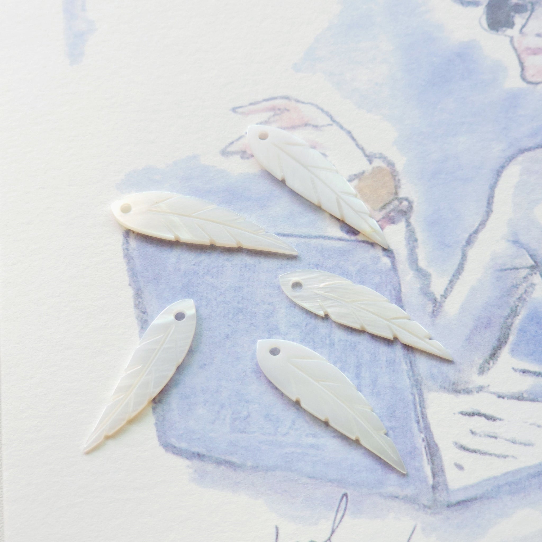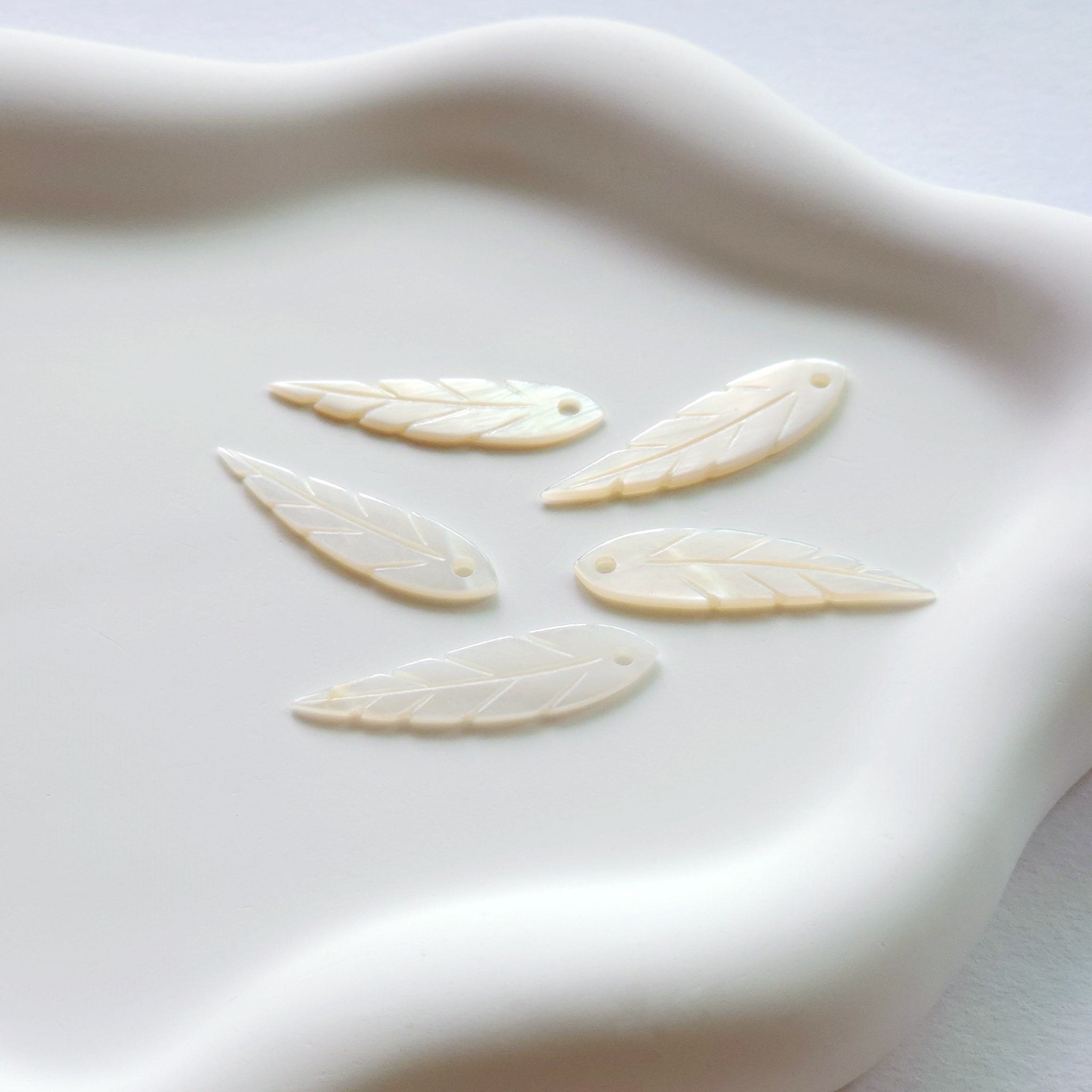 Leaf Shape White Mother-of-Pearl, MOP Shell Pendant, White Nacre, Shell Charm, Mother of Pearl Jewelry Making Findings, RY003