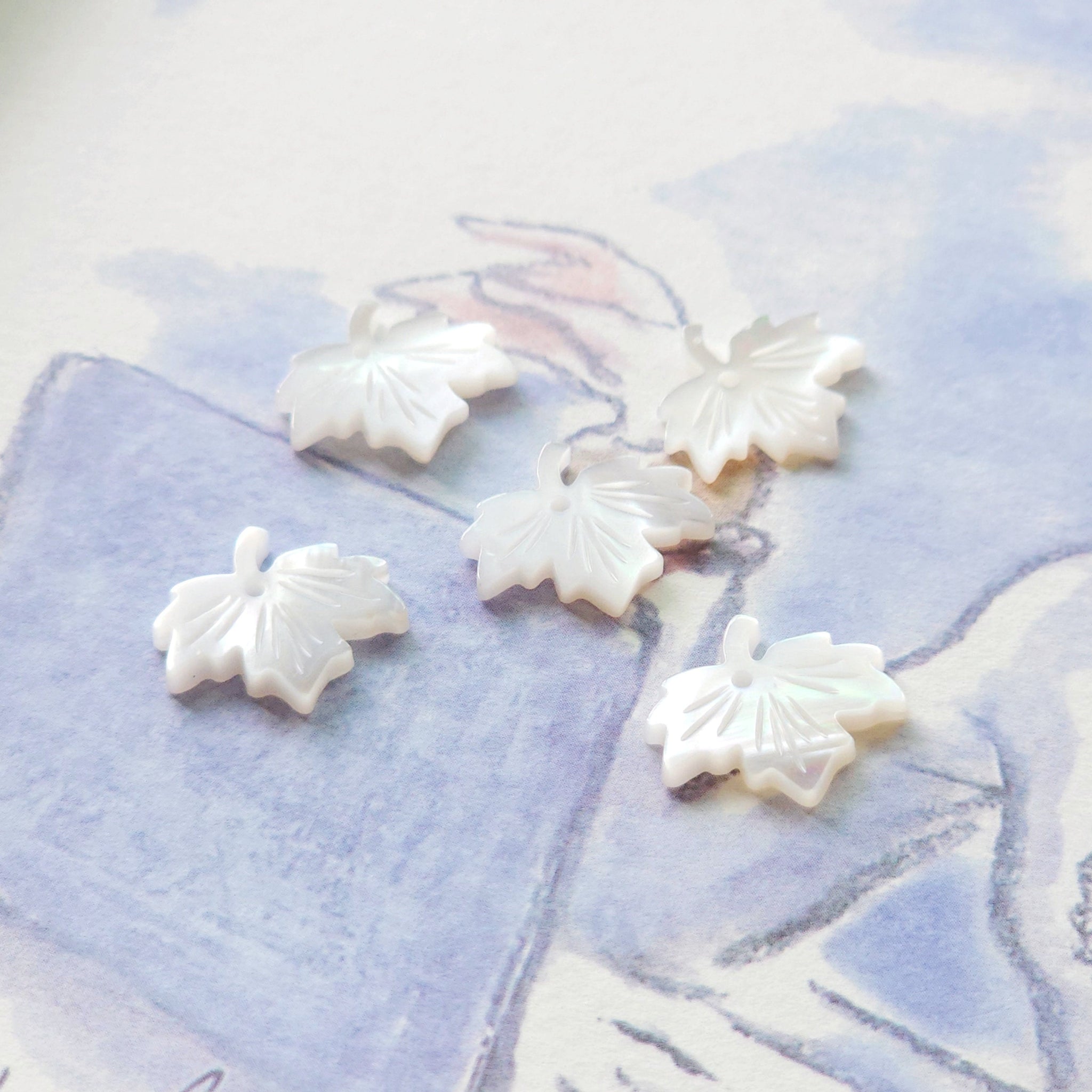 HomeNatural FindingsMaple Leaf White Mother-of-Pearl, MOP Shell Pendant, Carved White Nacre, Shell Charm, Mother of Pearl Jewelry Making Findings RY021