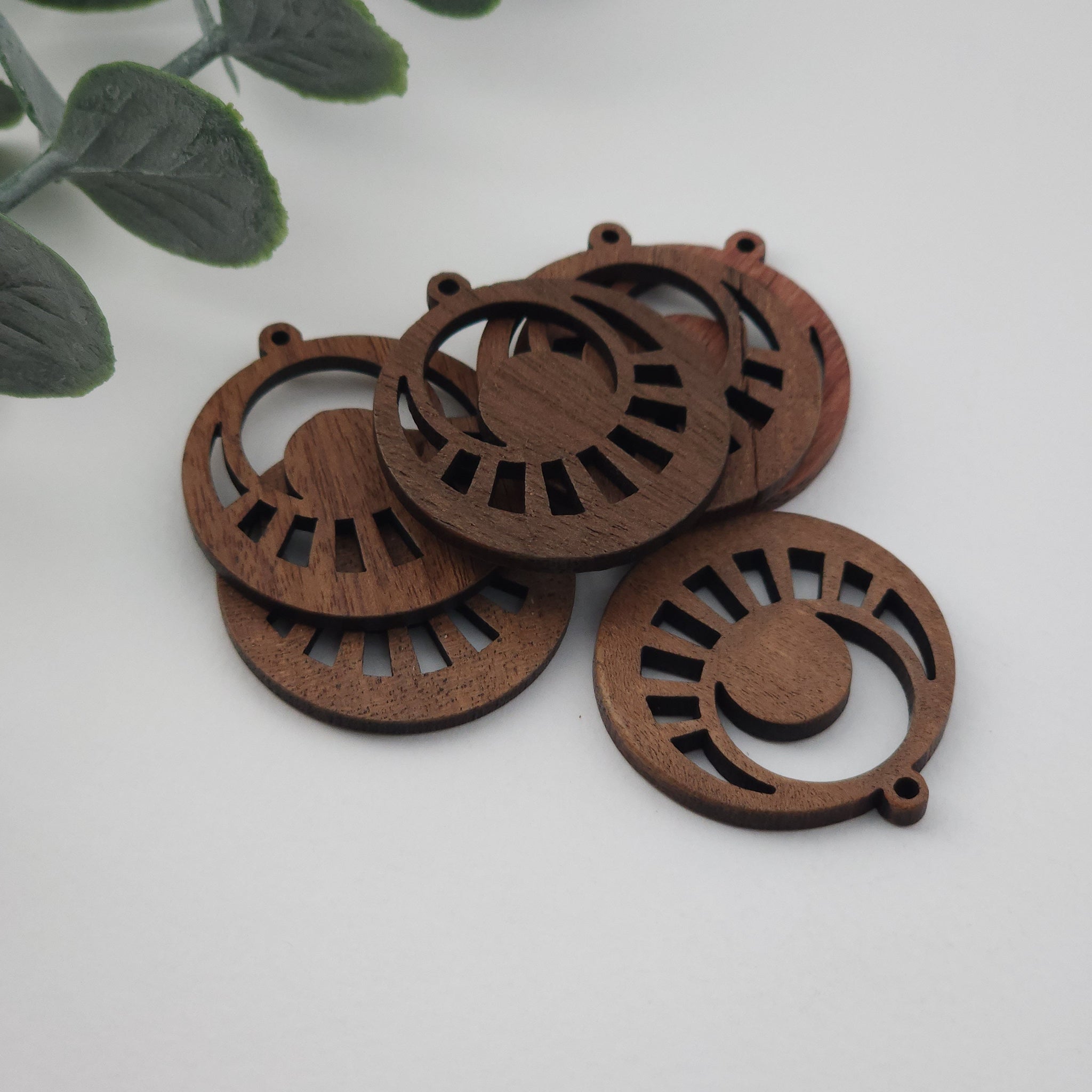 Round Geometric Shape Wood Charms, Eye Wooden Pendant, Reclaimed Walnut Wood, Geometric Statement Wood Earrings Diy...