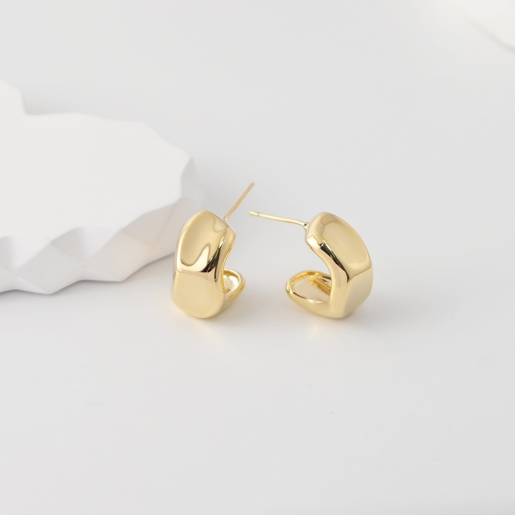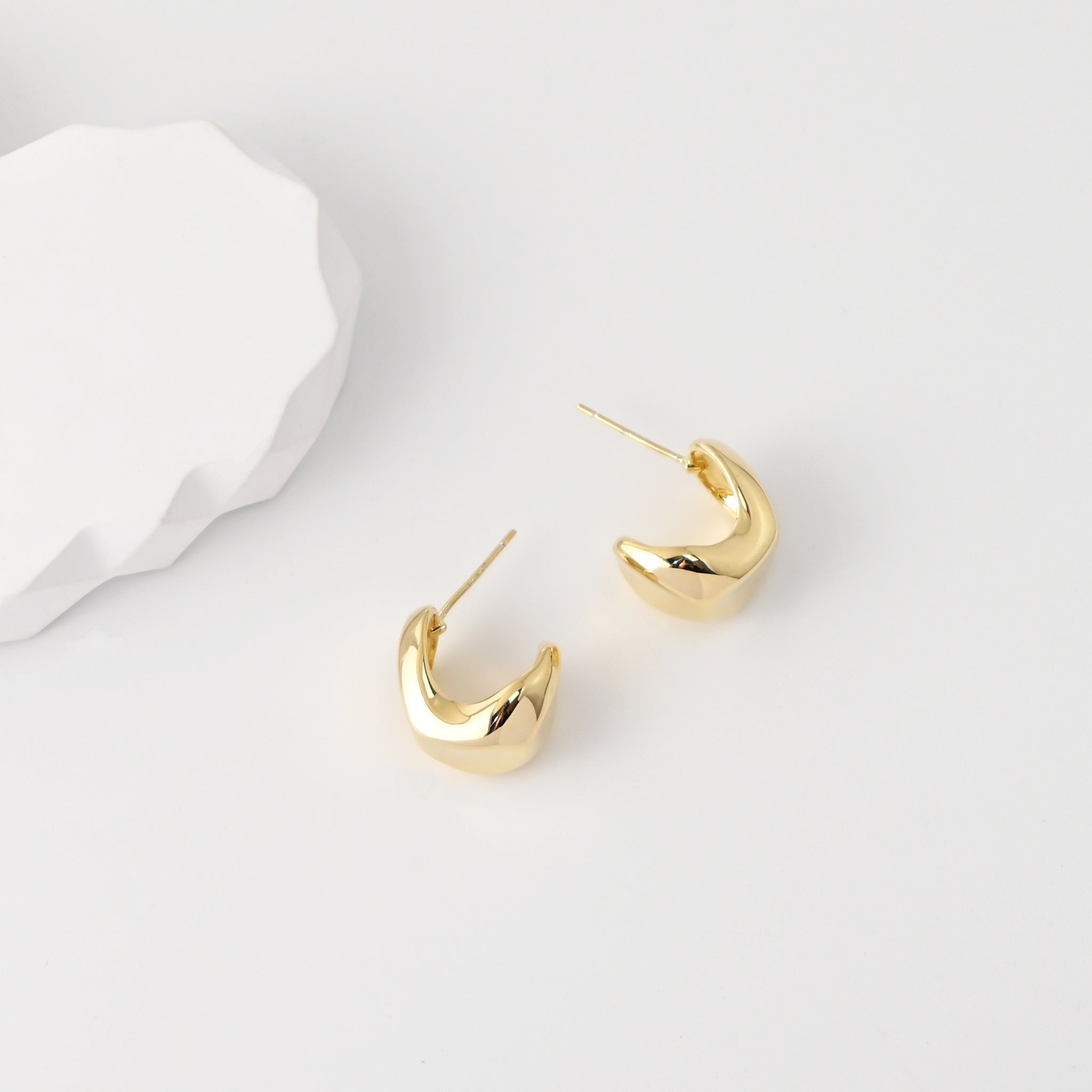 C Shape Earrings | 18K Gold Plated, S925 Sterling Silver Ear Pin, Finished Earring
