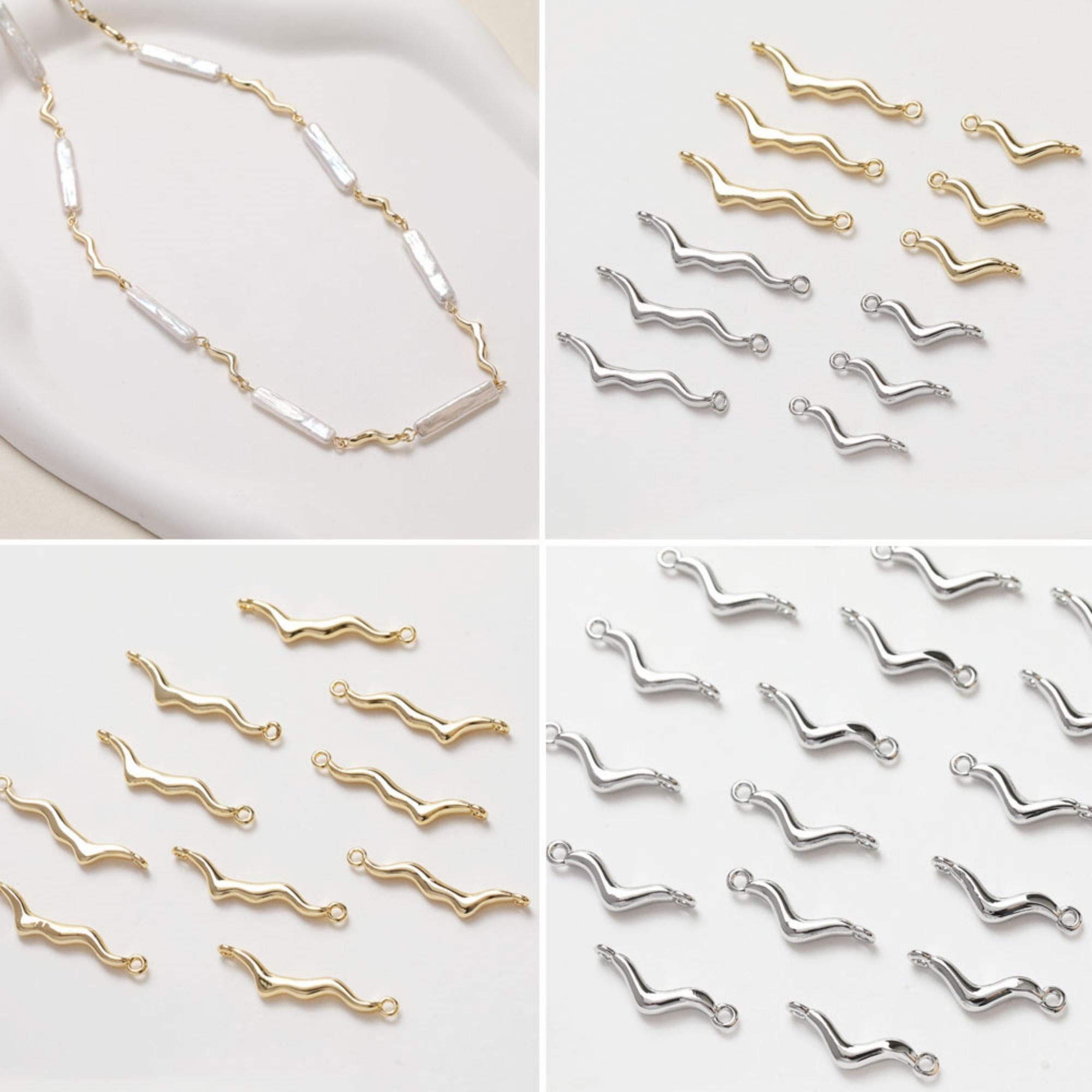 10pcs Danity Wave Connector with loops, 14K Gold Plated Earring Making Findings, Jewelry Findings GZ370Quantity: 10PCSSize:...