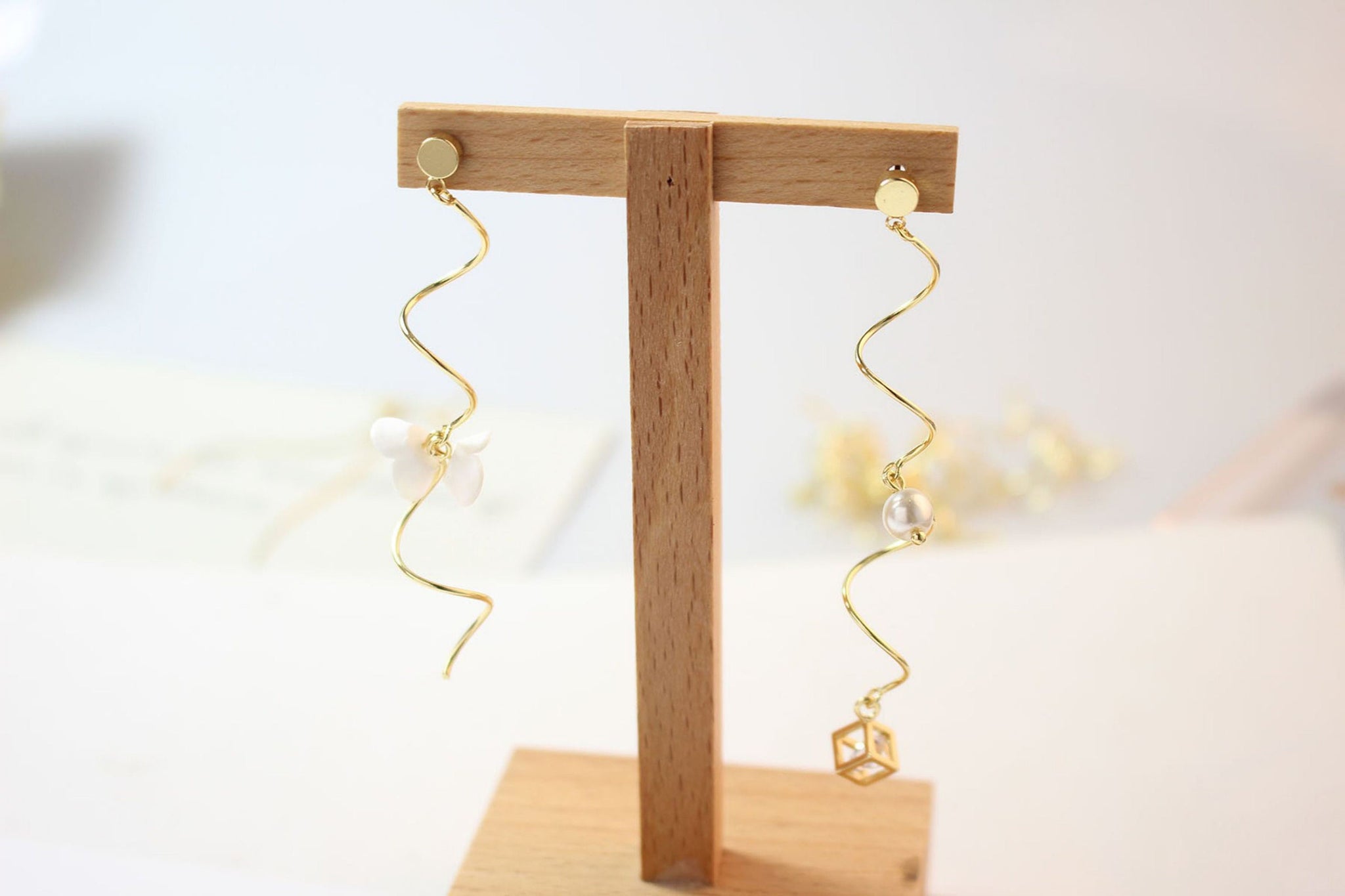 10pcs Danity Wave Connector with loops, 14K Gold/Silver Plated Earring Making Findings, Jewelry Findings GZ161