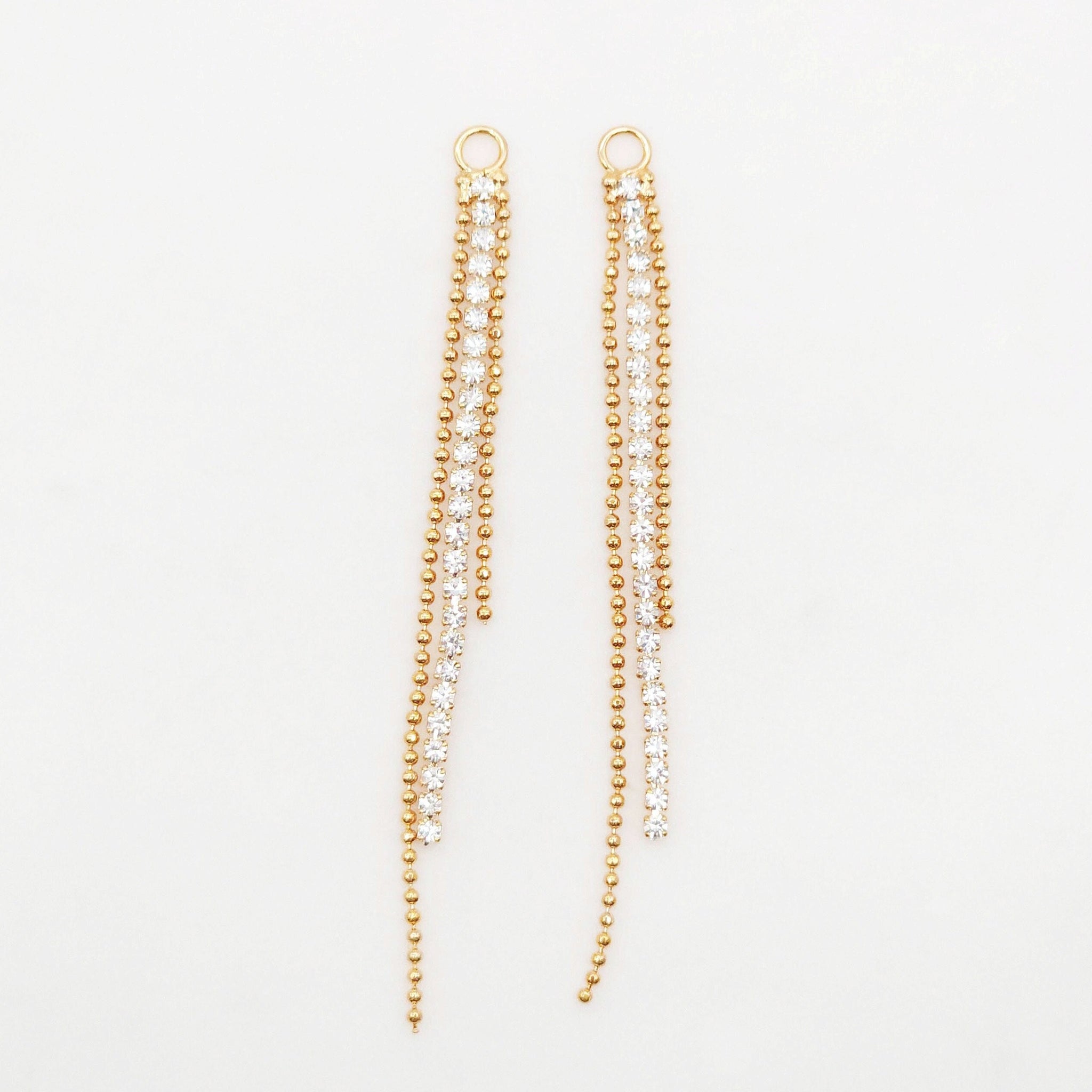 10pcs Gold Beads Chain Tassel Pendant, Rhinestone Chain Charm, Cubic Zirconia, 18K Gold Plated Earring Chain Pendant, Earring Findings ZX088