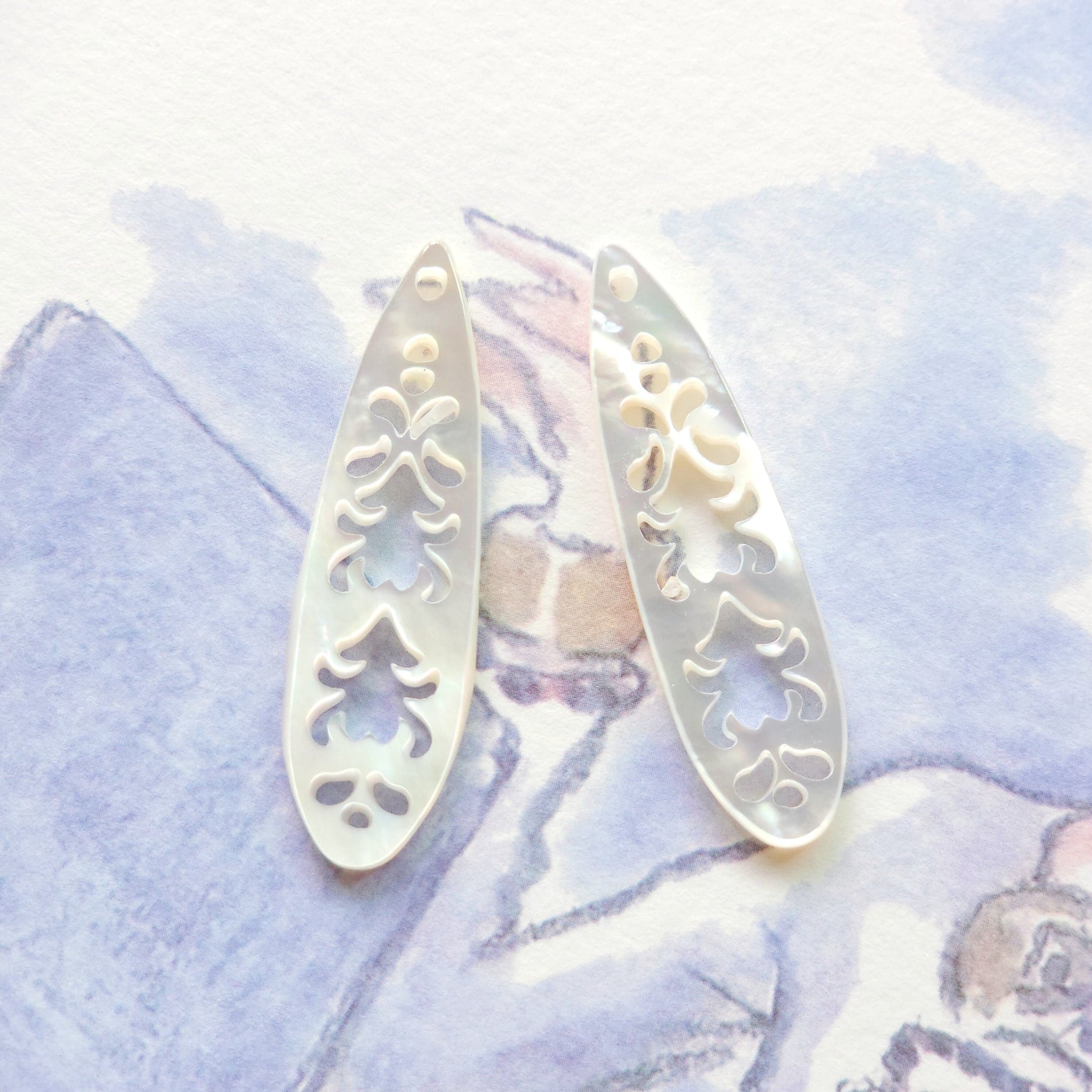 Elongated Oval White Mother-of-Pearl, MOP Shell Pendant, White Caved Nacre, Shell Charm, Mother of Pearl Jewelry Making Findings RY016