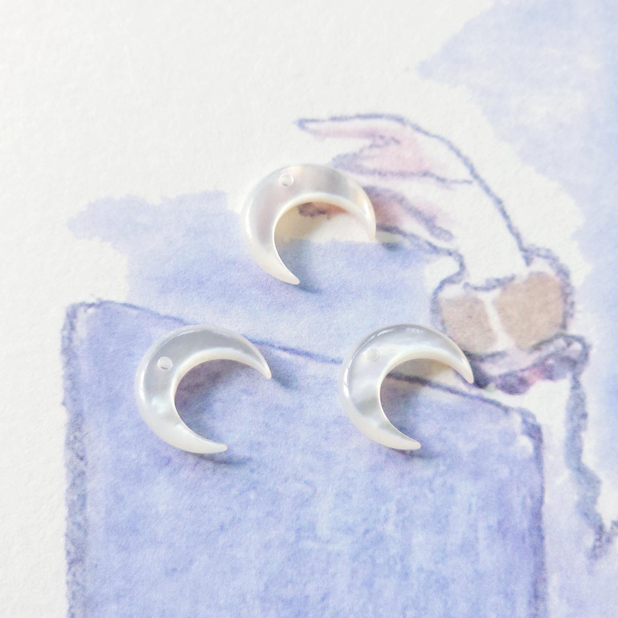 Moon Shape White Mother-of-Pearl, MOP Shell Pendant, 3D White Nacre, Ox Horn Shell Charm, Shell Jewelry Making Findings RY052