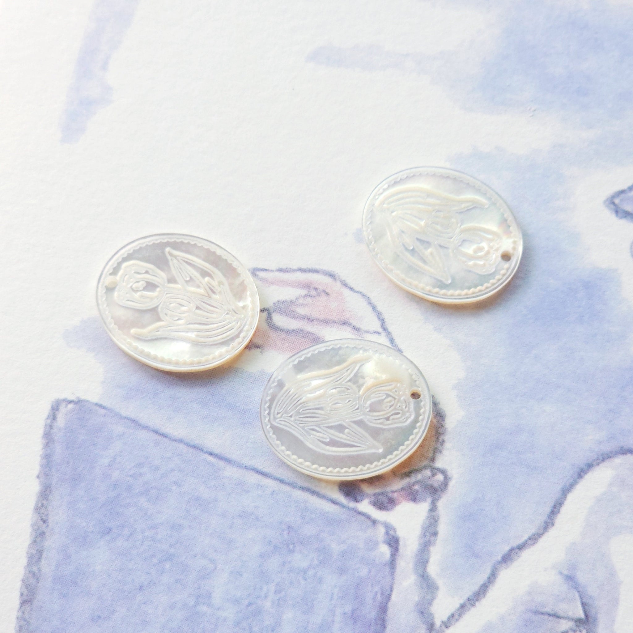 Oval-shaped Tulips Mother-of-Pearl, MOP Shell Pendant, Engraved White Nacre, Shell Charm, Mother of Pearl Jewelry Making Findings RY011