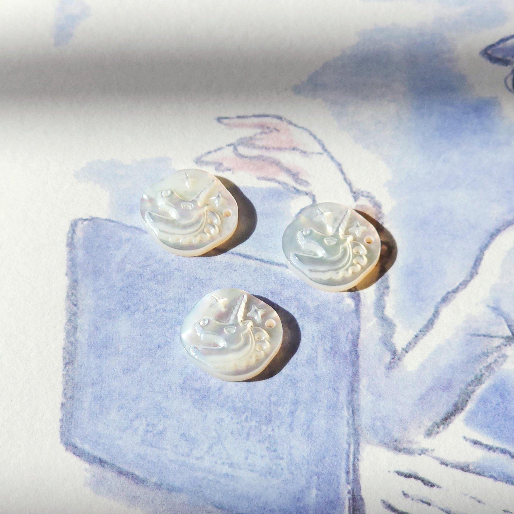 Unicorn White Mother-of-Pearl, MOP Shell Pendant, Engraved White Nacre, Shell Charm, Round Shell Jewelry Making Findings RY032