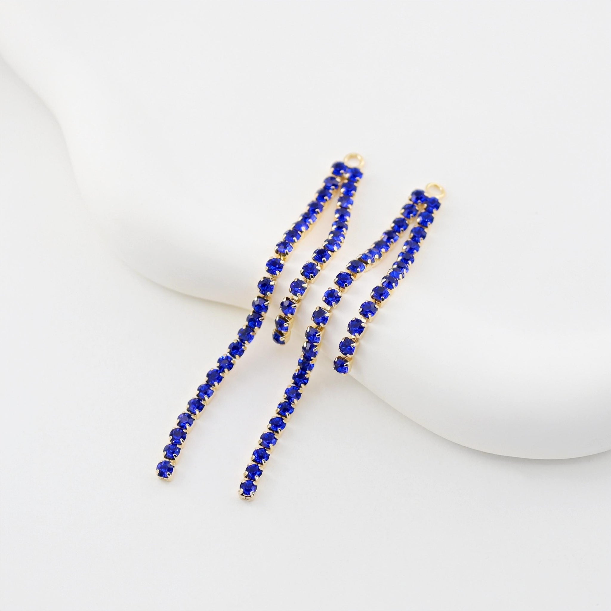 Deep Blue Zircon Tassel with 18K Real Gold Plating, Navy CZ Pave Tassel, For Earring Making,...