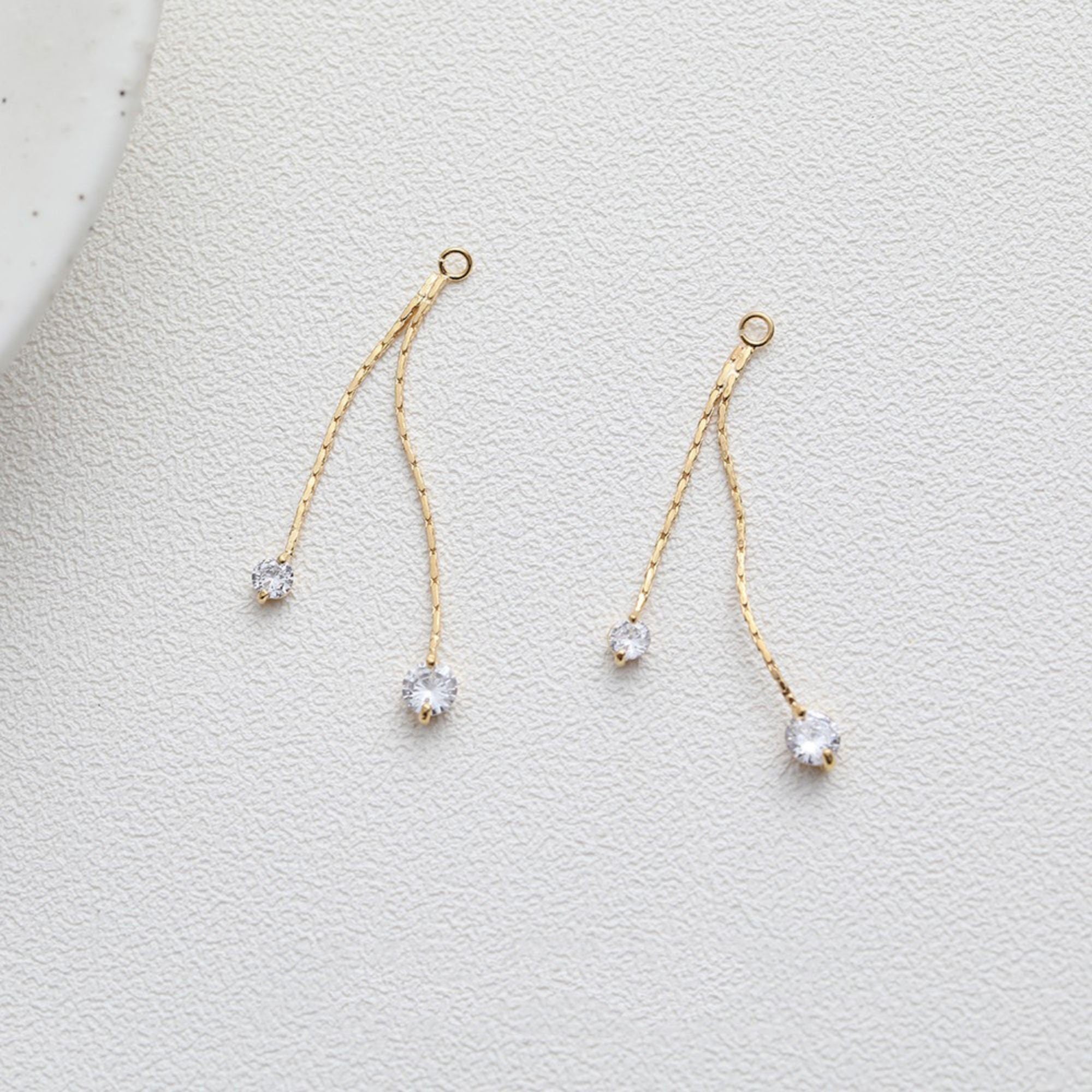 Gold Chain Tassel Pendant, CZ Pave Chain Charm, Cubic Zirconia, 18K Gold Plated Earring Chain Pendant, Earring Findings JG041