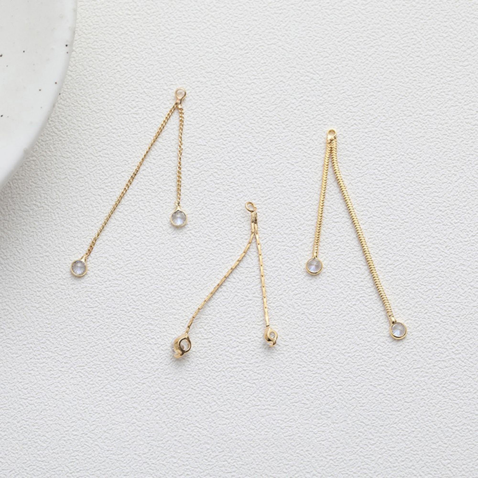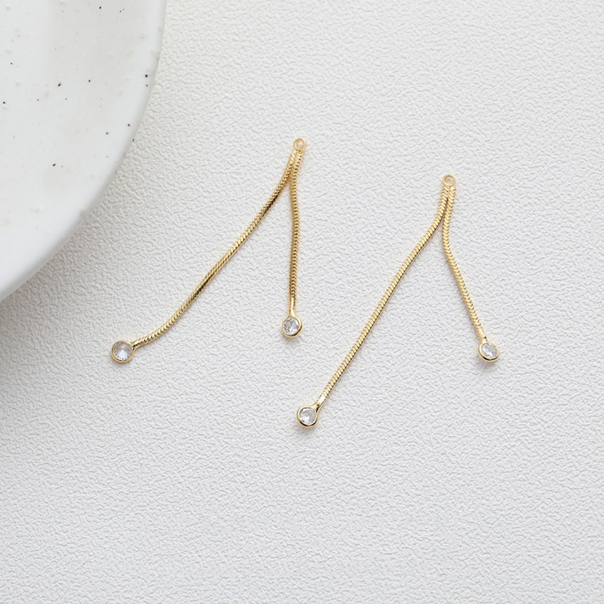 Gold Chain Tassel Pendant, CZ Pave Chain Charm, Cubic Zirconia, 18K Gold Plated Earring Chain Pendant,...
