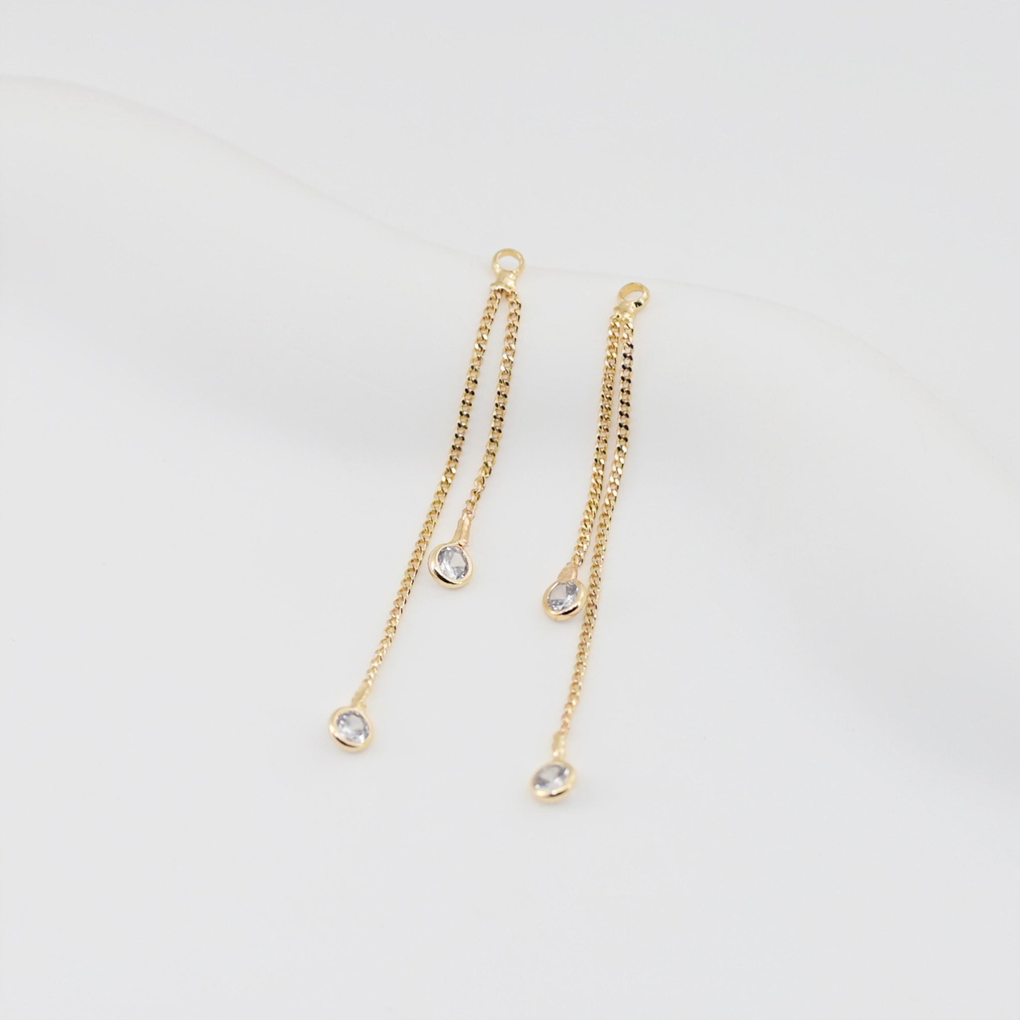 Gold Chain Tassel Pendant, CZ Pave Chain Charm, Cubic Zirconia, 18K Gold Plated Earring Chain Pendant, Earring Findings ZX358