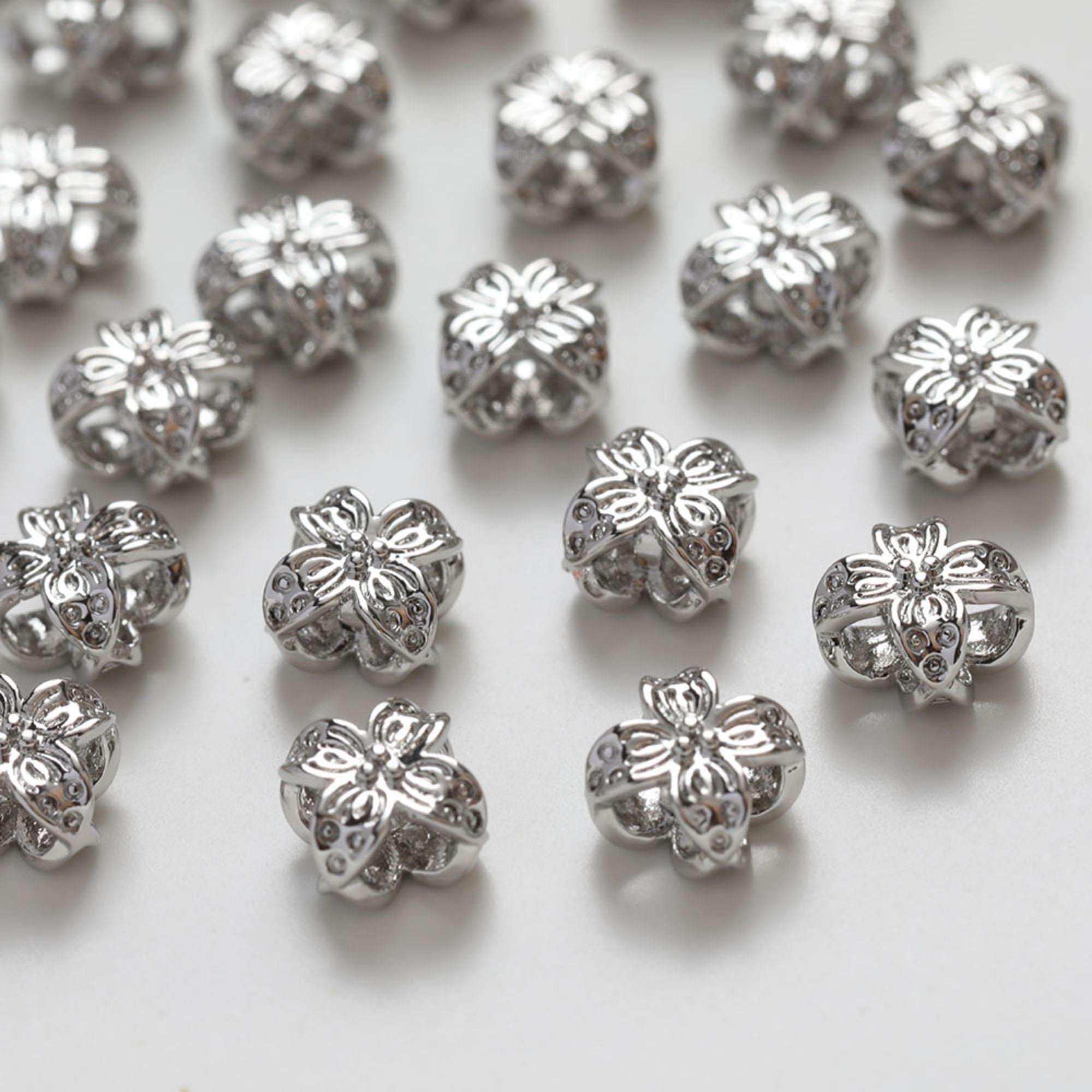 HogarRosarioCuentas espaciadoras de flores, chapadas en oro de 14 quilates, cuentas de flores 3D, delicadas cuentas para hacer aretes, accesorio de joyería GZ251