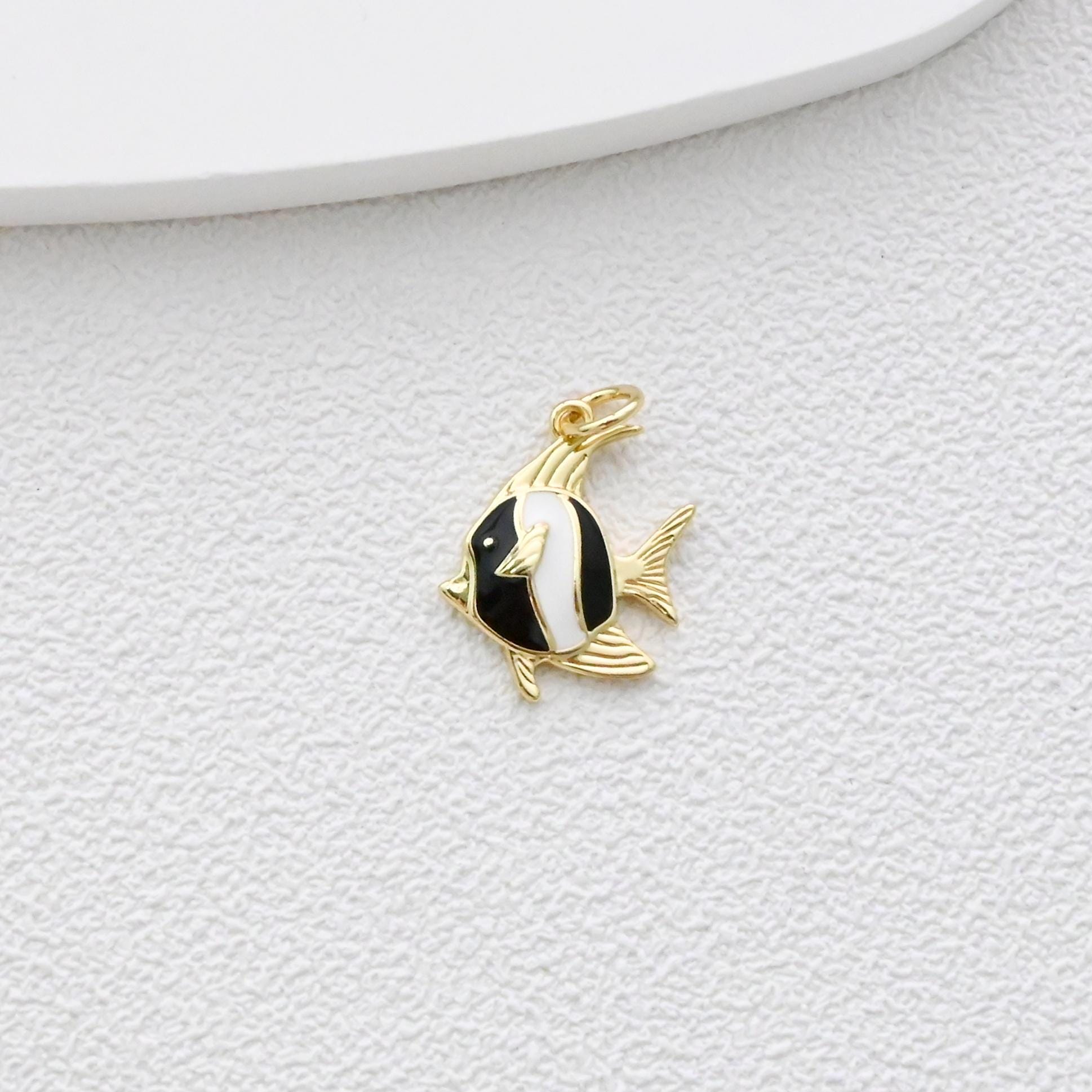 Colgante de pez ángel, dijes de pez esmaltado, dijes de vida marina, dijes chapados en oro de 18 quilates, fabricación de pulseras y aretes, accesorios de joyería S1369