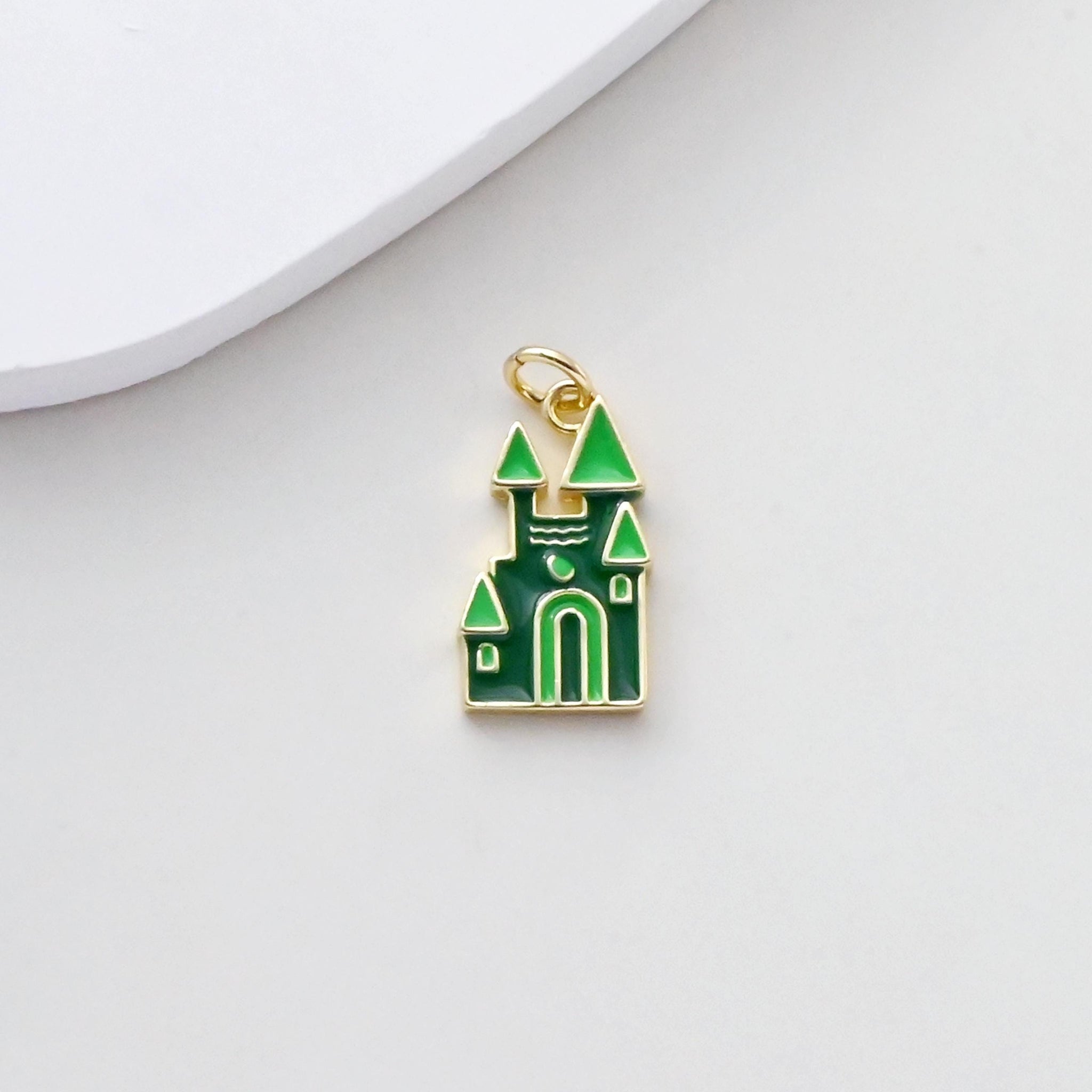 HogarDijes y colgantesColgante de castillo, dijes de castillo 3D esmaltados, dijes de castillo chapados en oro de 18 quilates, para hacer pulseras y collares, accesorios de joyería S1376
