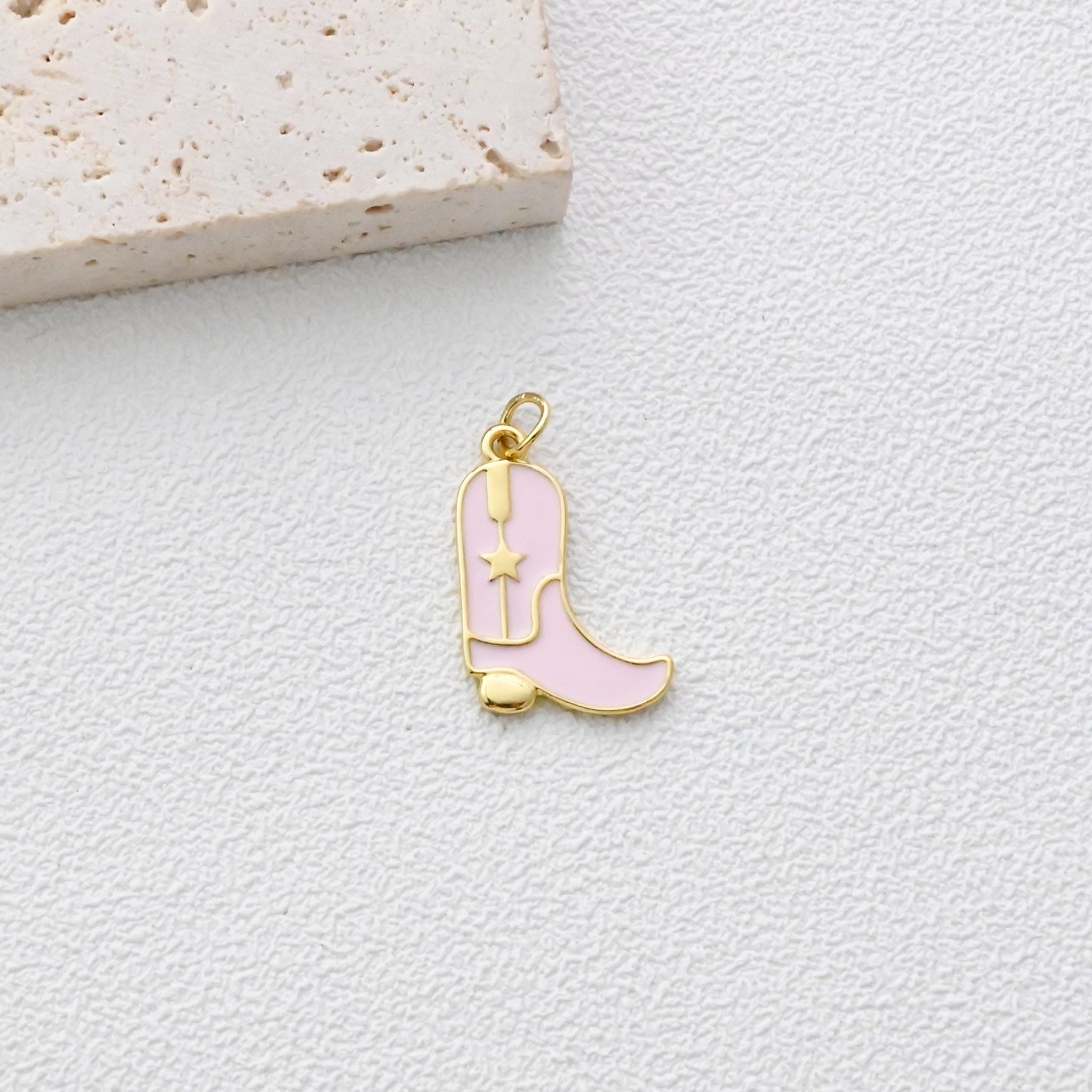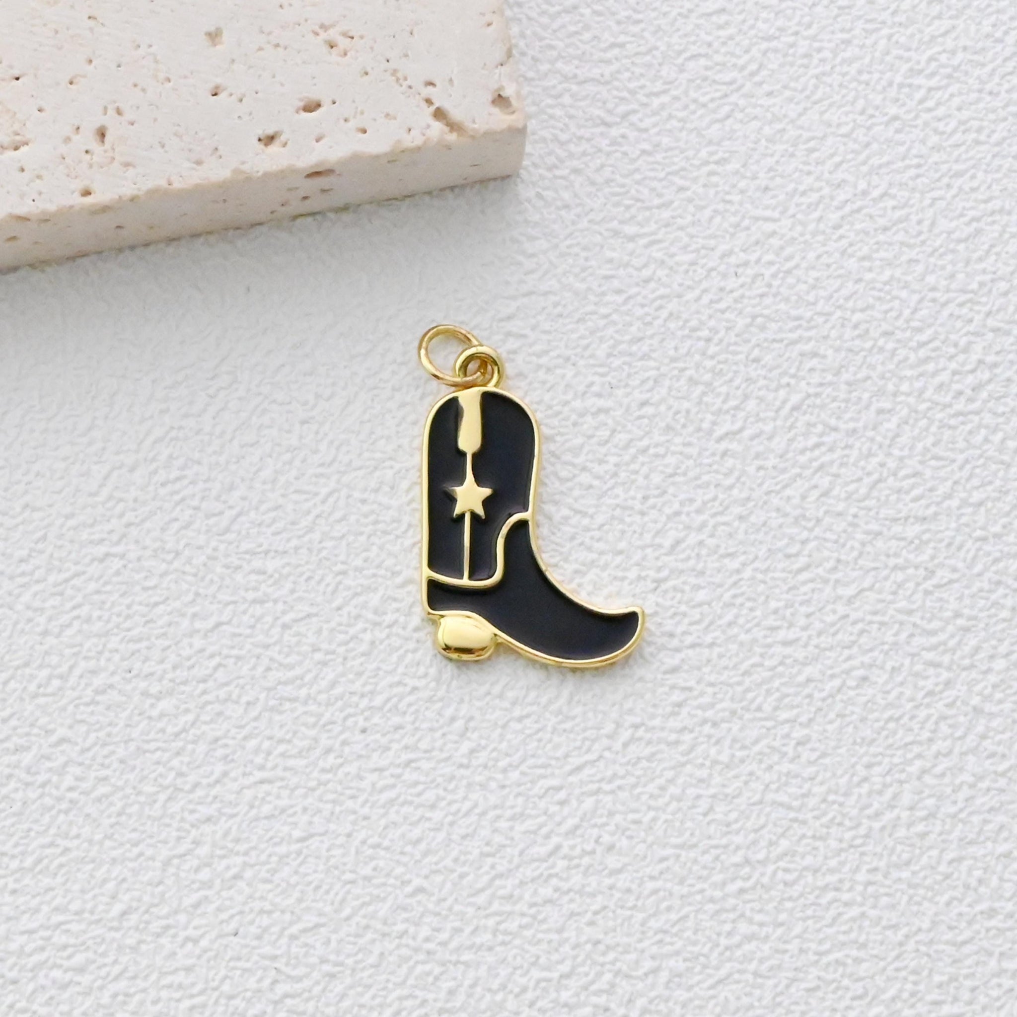 Colgante de botas de vaquero, dijes de botas de lluvia esmaltadas, dijes de botas chapados en oro de 18 quilates, fabricación de pulseras y collares, accesorios de joyería S1346