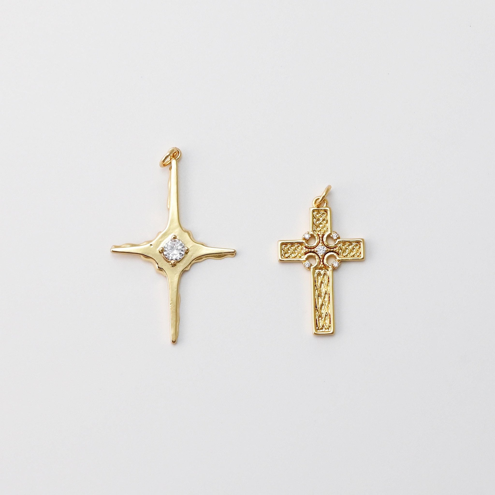 HogarDijes y colgantesDijes de cruz, colgante de cruz con pavé de circonitas, latón chapado en oro de 18 quilates, dijes para hacer collares, accesorios de joyería