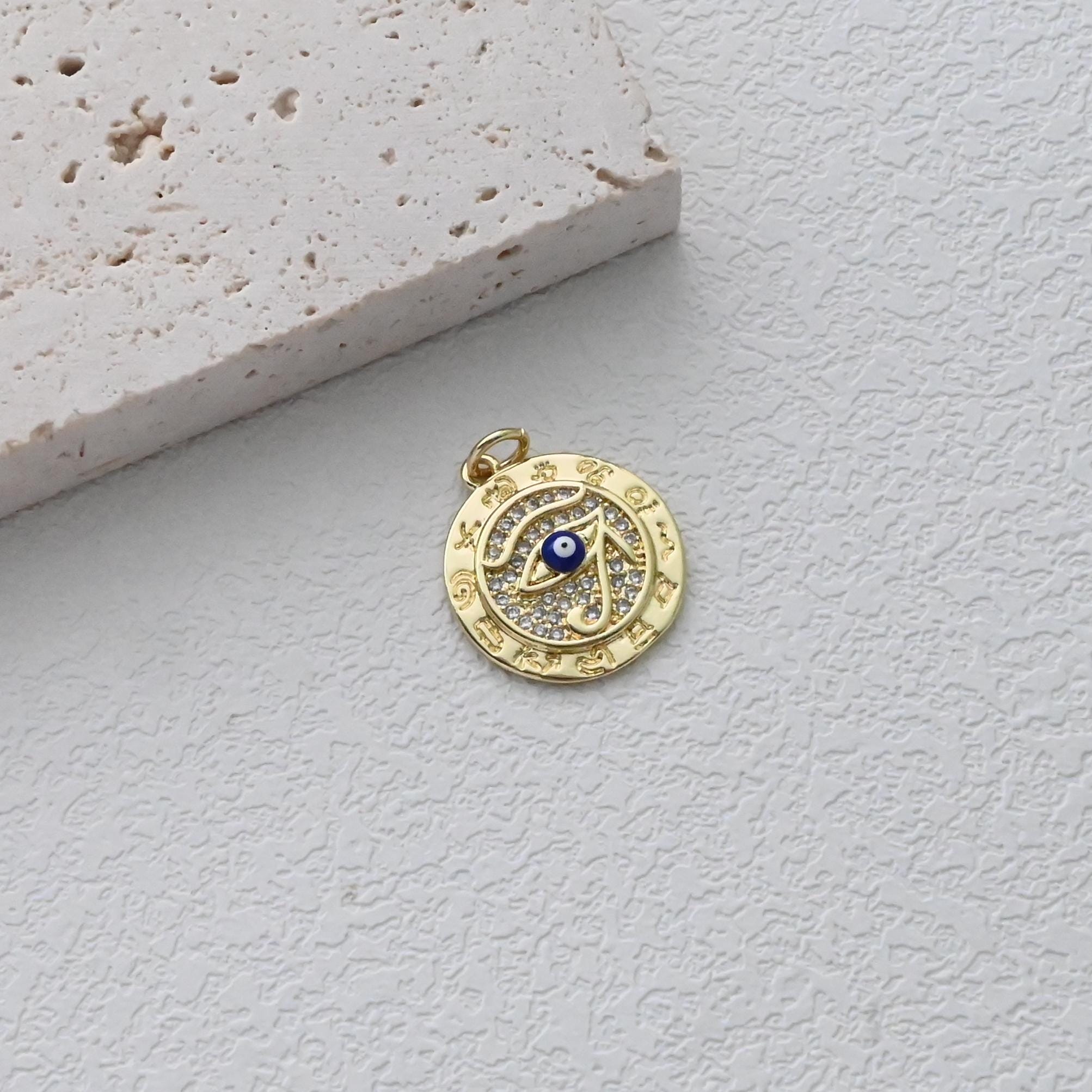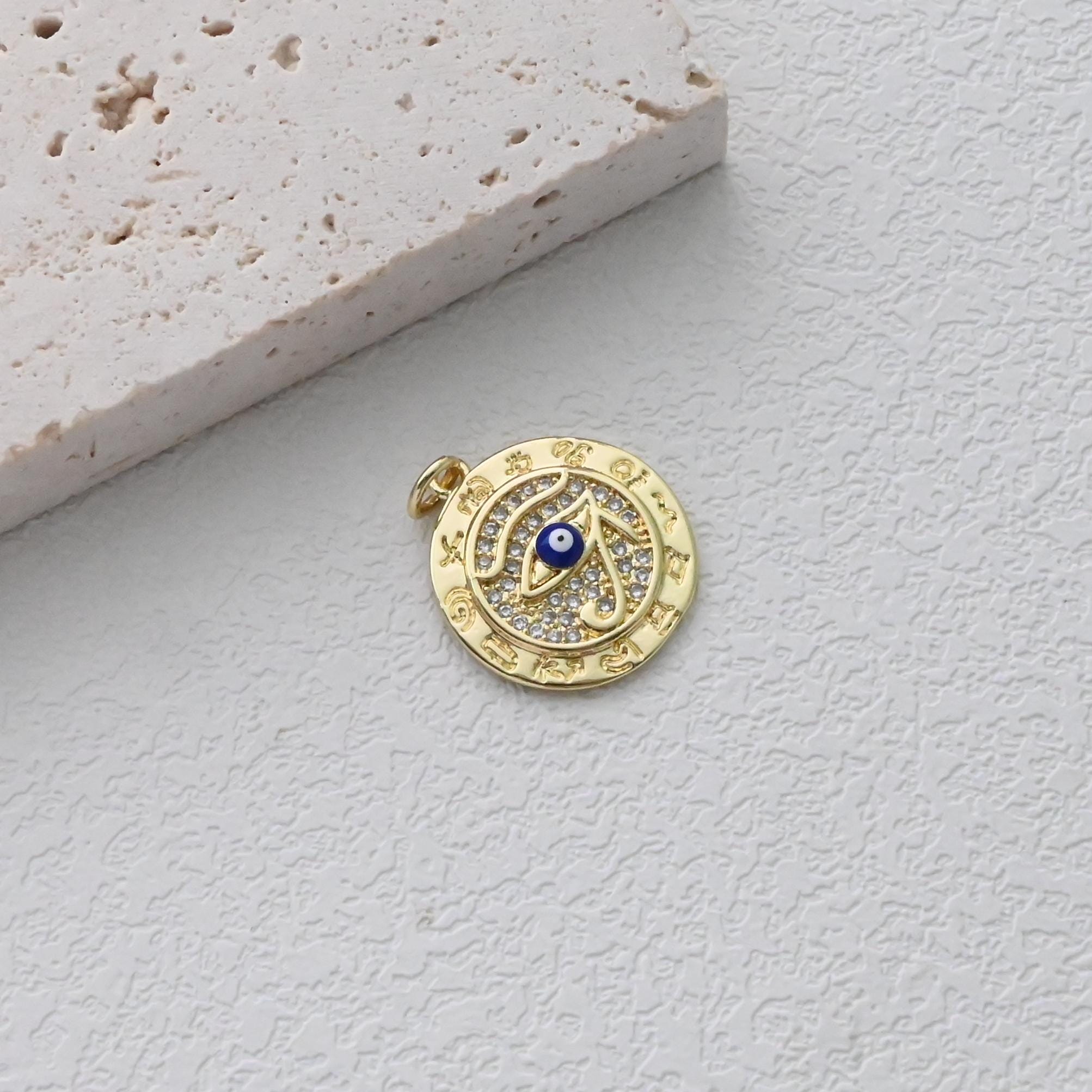 Dije de ojo turco cúbico, colgante redondo con pavé de circonitas cúbicas bañado en oro de 18 quilates, dije para hacer collares, accesorios de joyería S1302