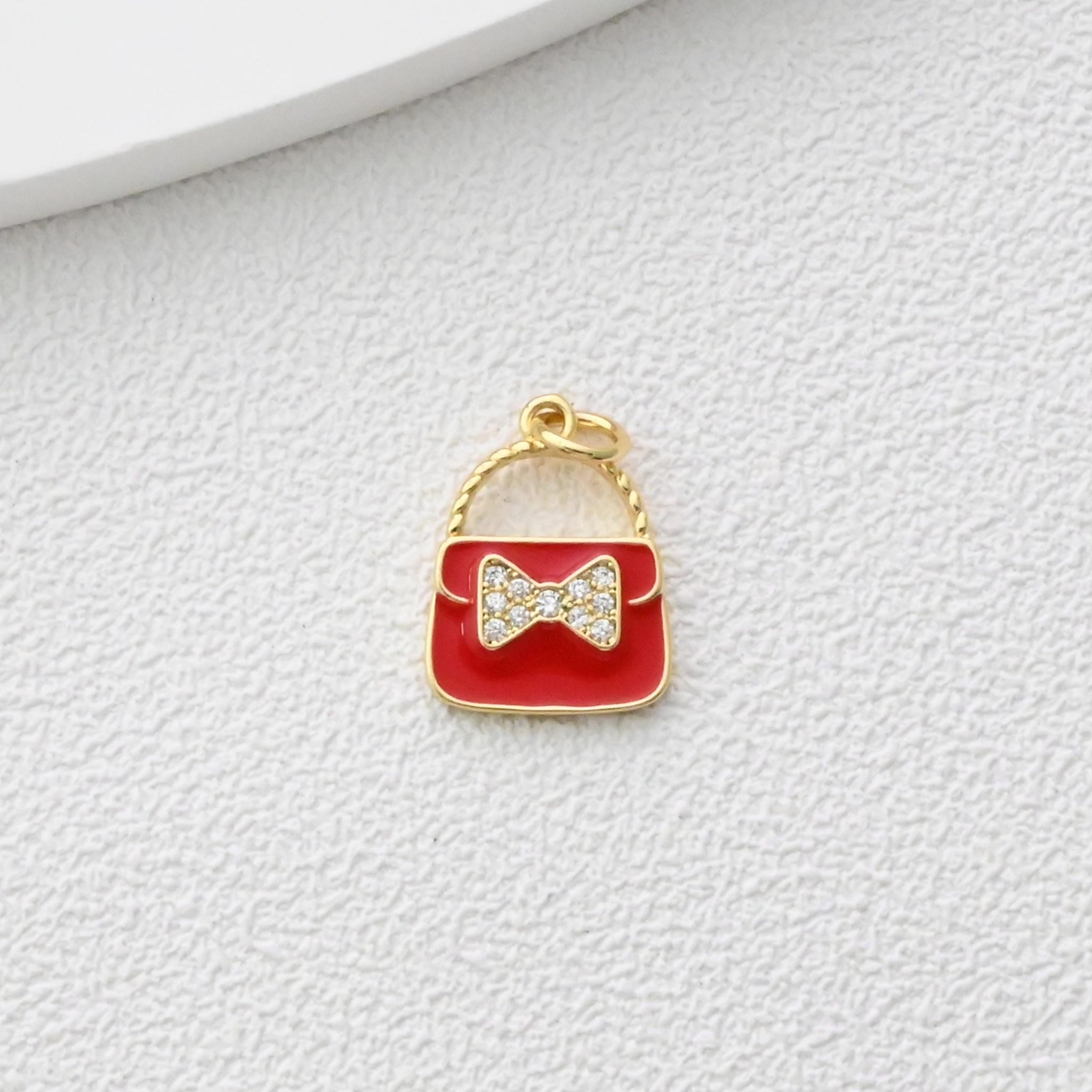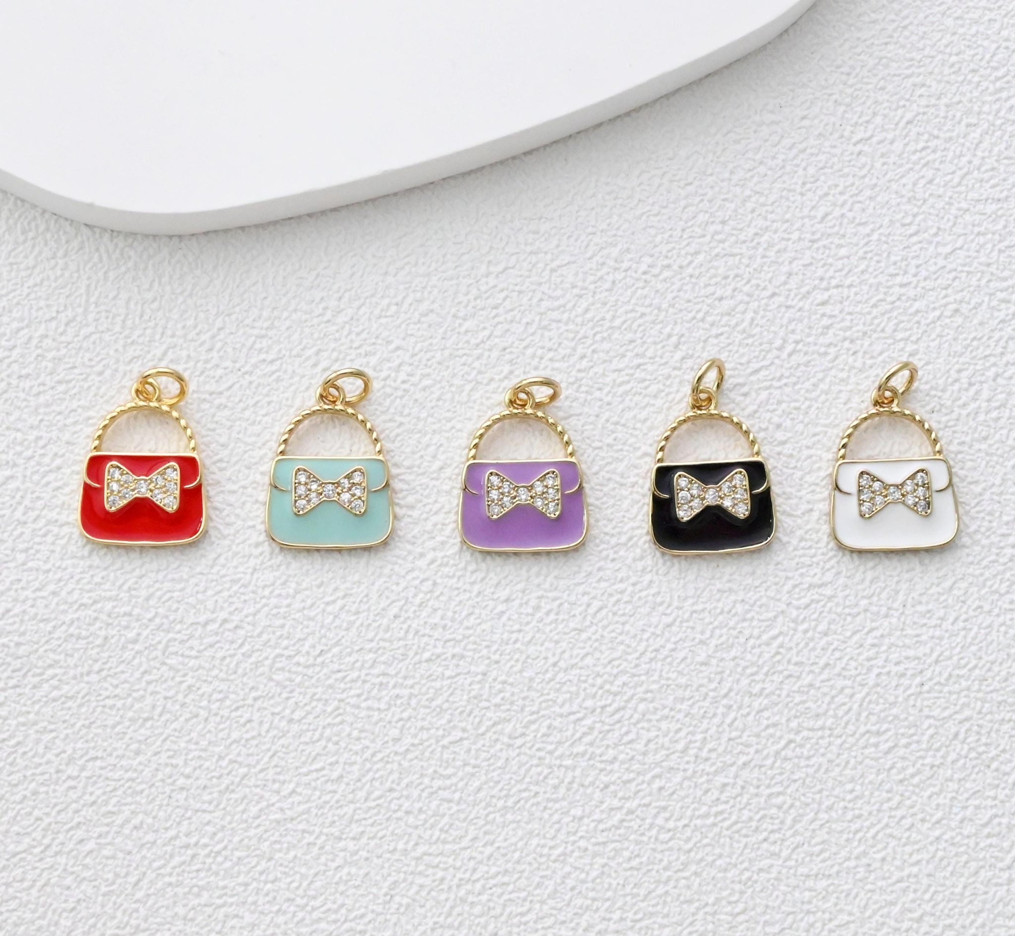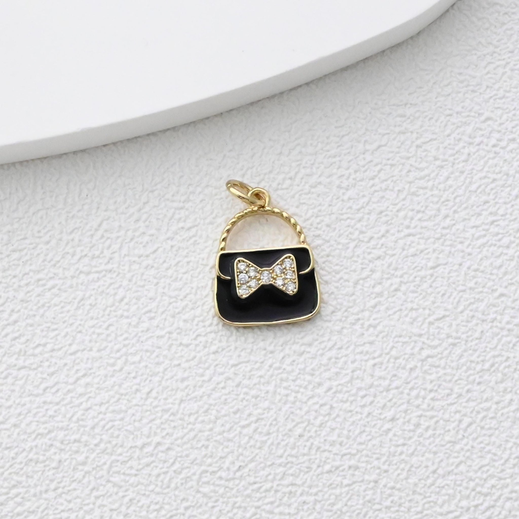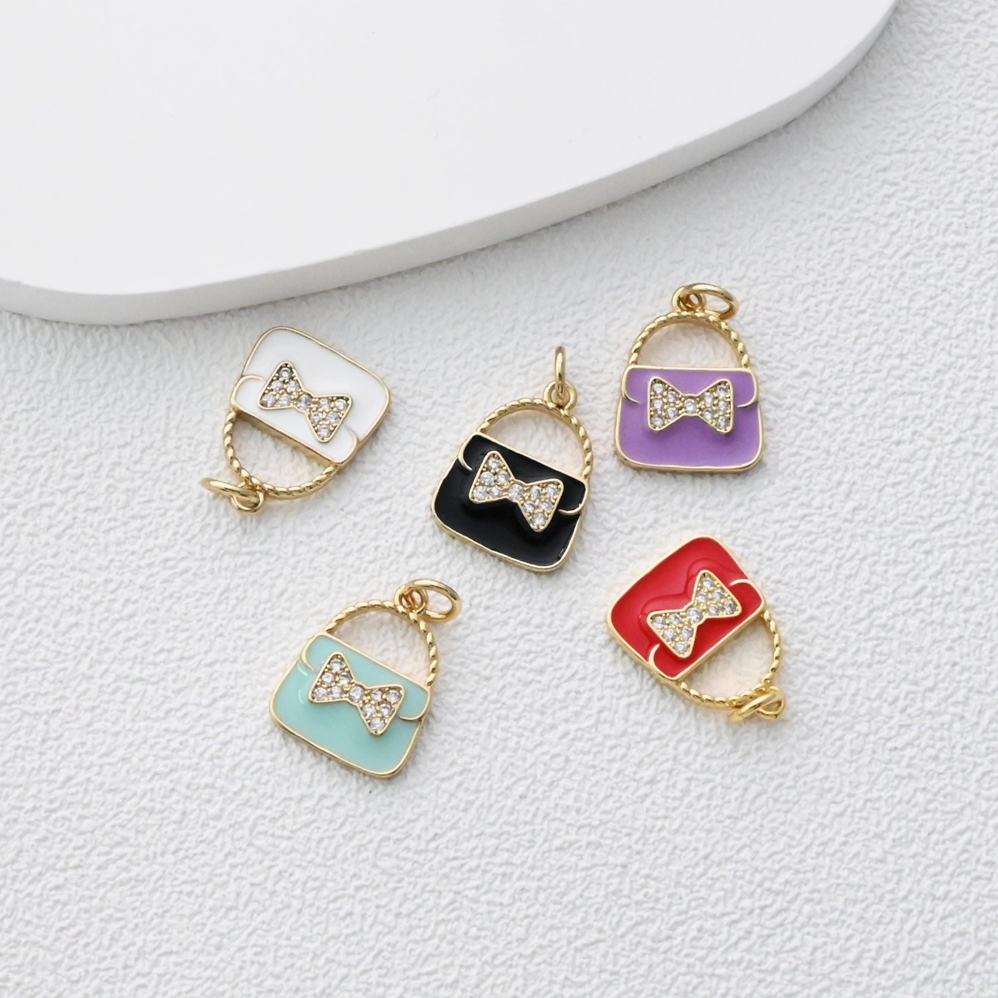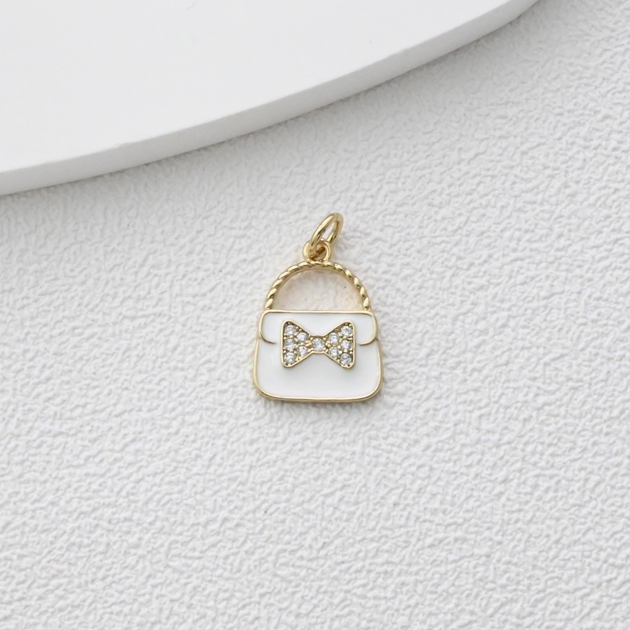 Colgante para bolso con pavé de circonitas cúbicas, bonitos dijes esmaltados para bolso, dijes chapados en oro de 18 quilates, fabricación de pulseras y collares, accesorios de joyería S1374
