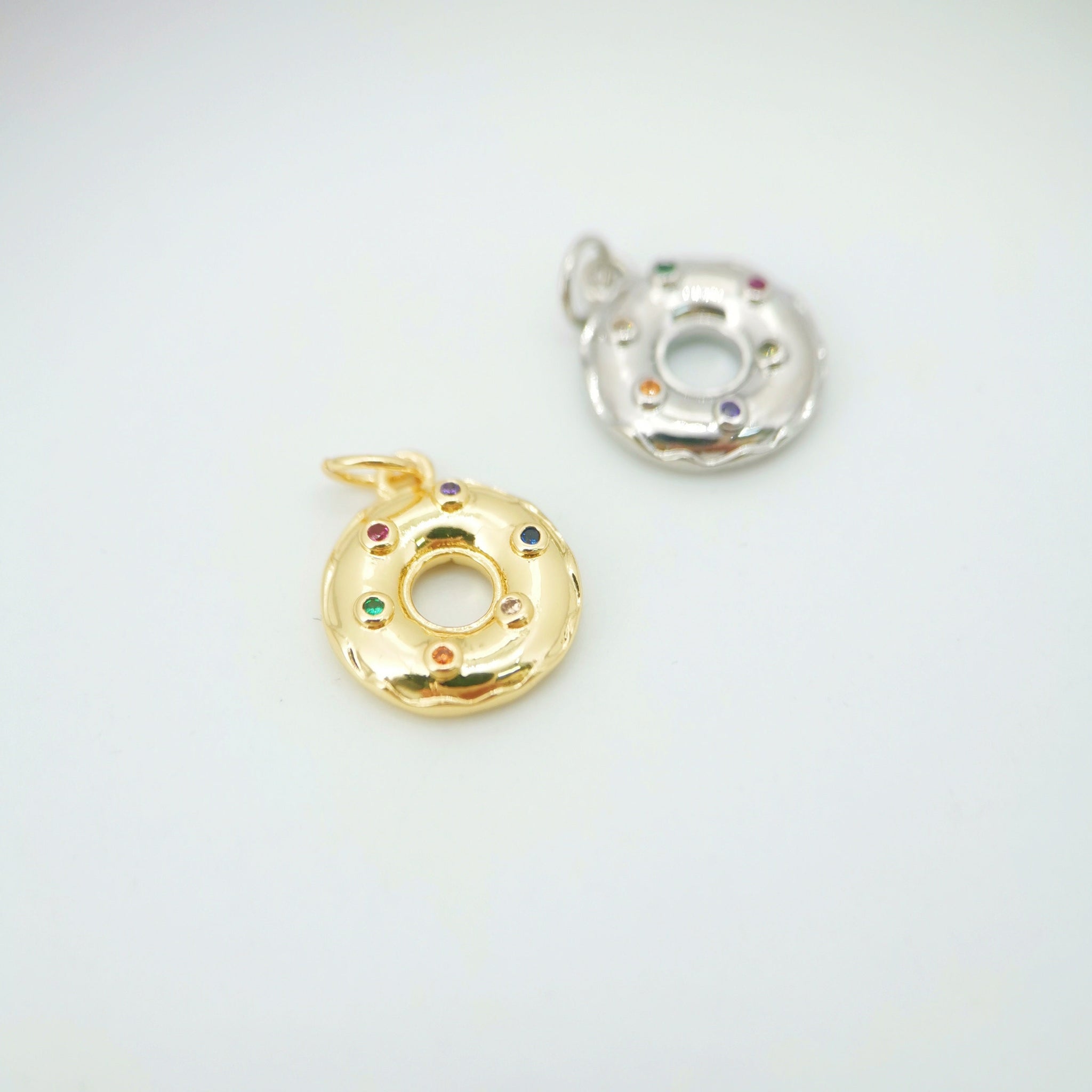Dijes de donas, colgante de comida cúbica transparente, chapado en oro de 18 quilates, para hacer...