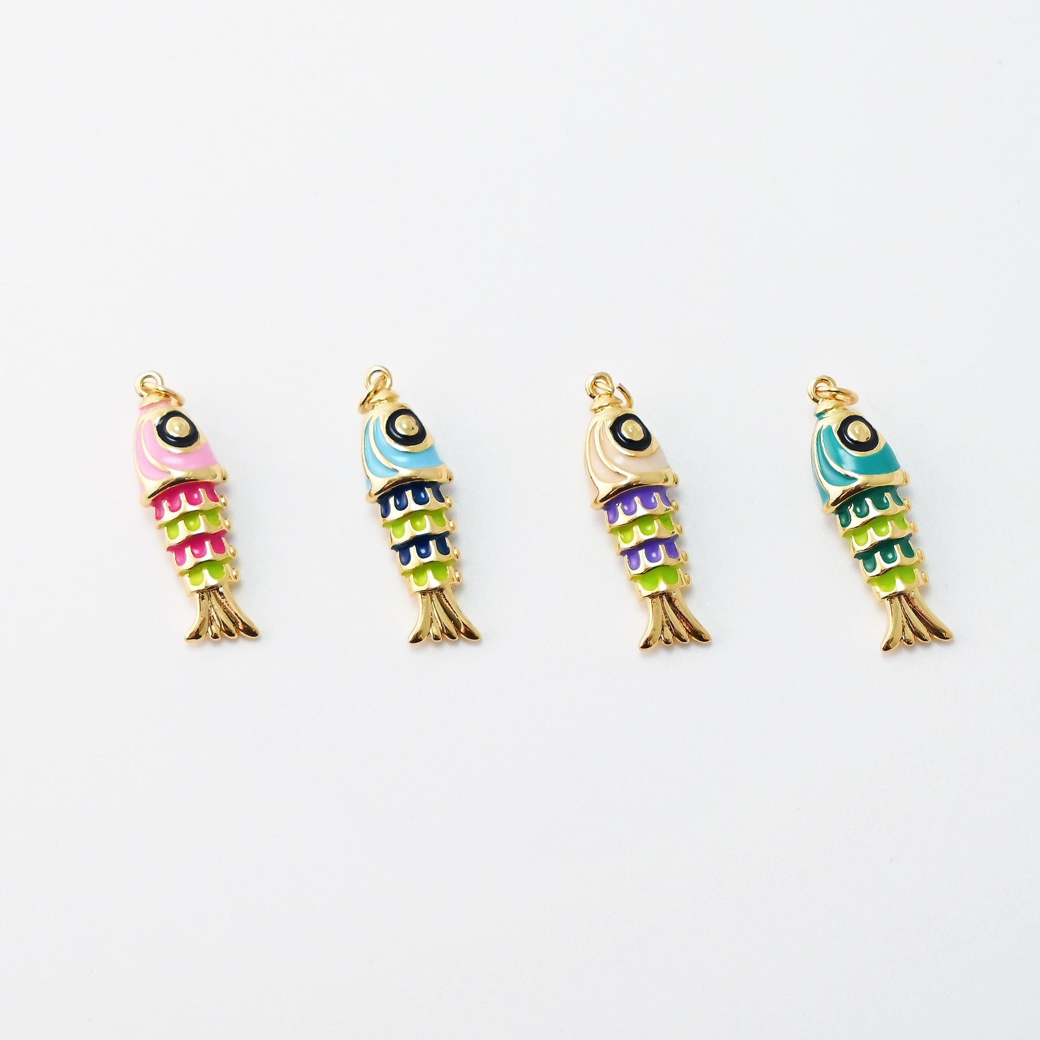 HogarDijes y colgantesDijes de pez esmaltado, dijes de vida marina, dijes chapados en oro de 18 quilates, para hacer pulseras y aretes, accesorios de joyería S1459