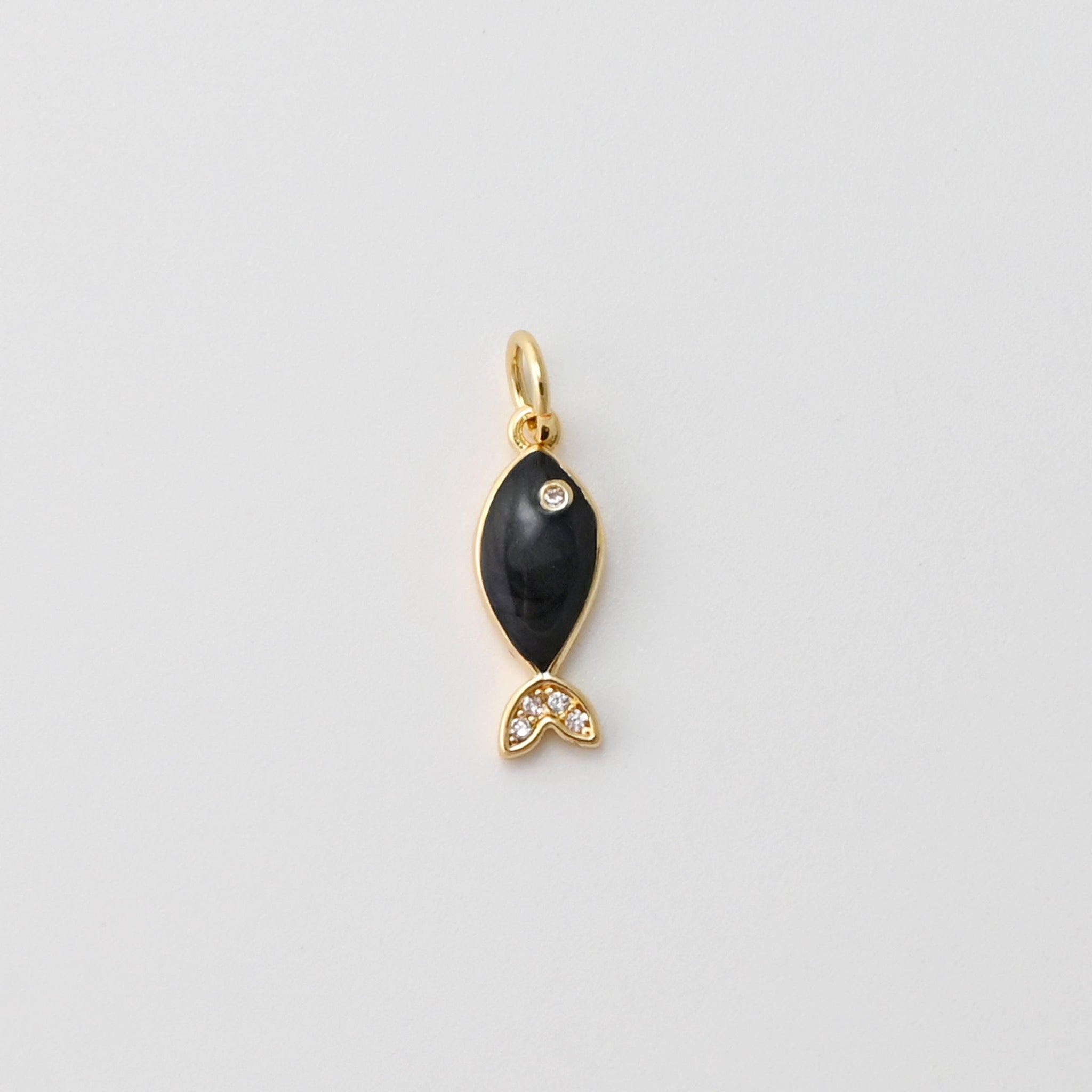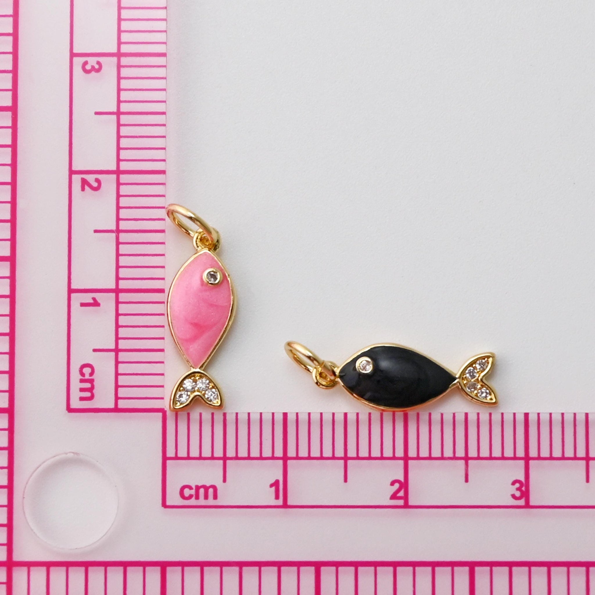 Colgante de pez, dijes de pez esmaltados, circonita pavé, dijes de animales chapados en oro de 18 quilates, para hacer pulseras y collares, accesorios de joyería S1445