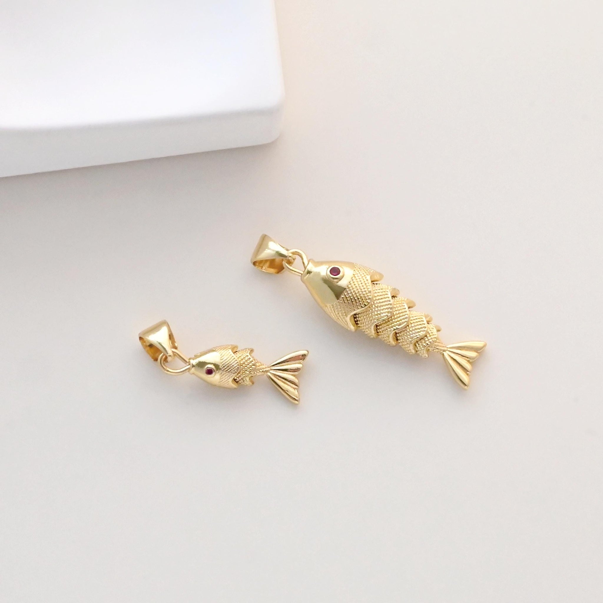 HogarDijes y colgantesDijes de pez dorado, dijes chapados en oro de 18 quilates, colgante de espina de pez, dijes para collar, accesorios de joyería S1328