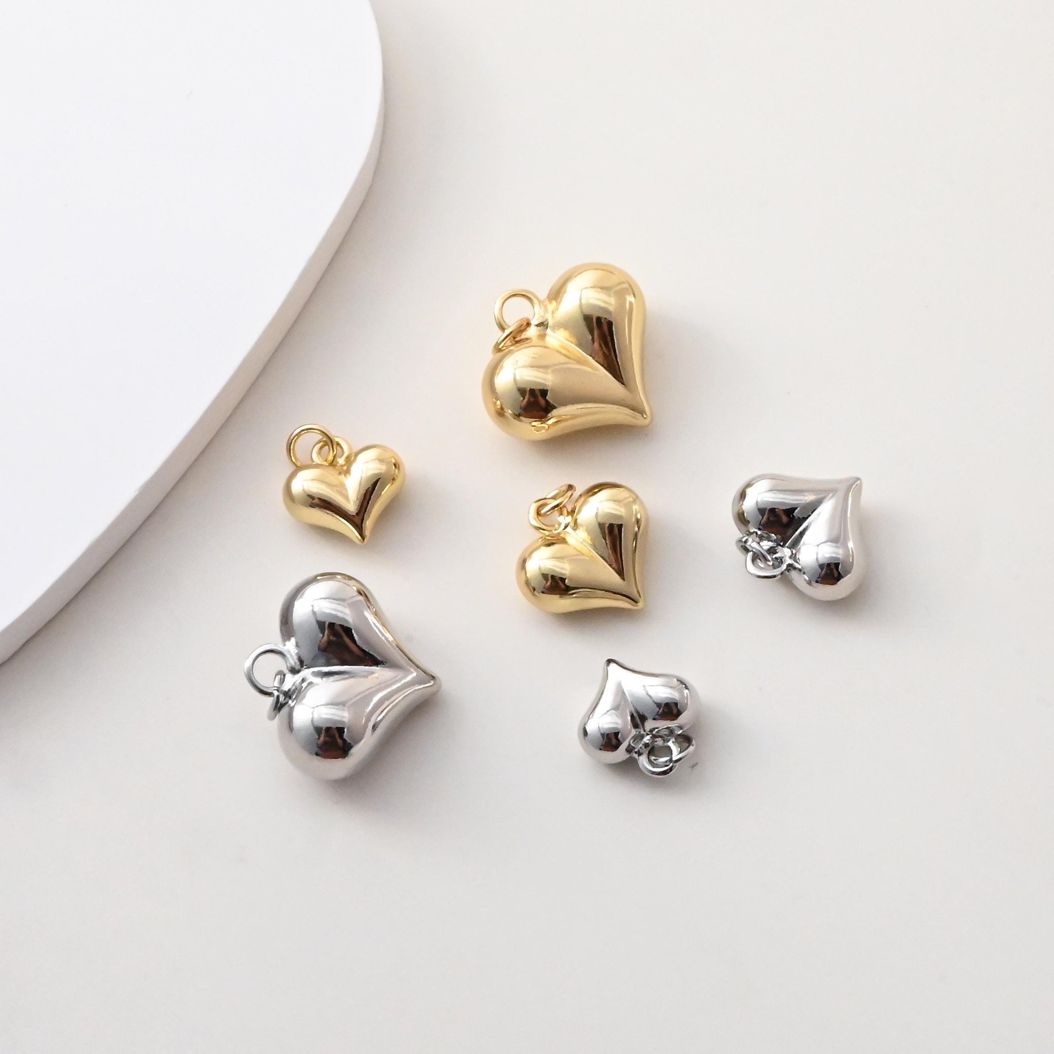 HogarDijes y colgantesDijes de corazón de oro, chapados en oro de 18 quilates, colgante de amor 3D, para hacer colgantes en collares y pulseras, accesorios de joyería S1380