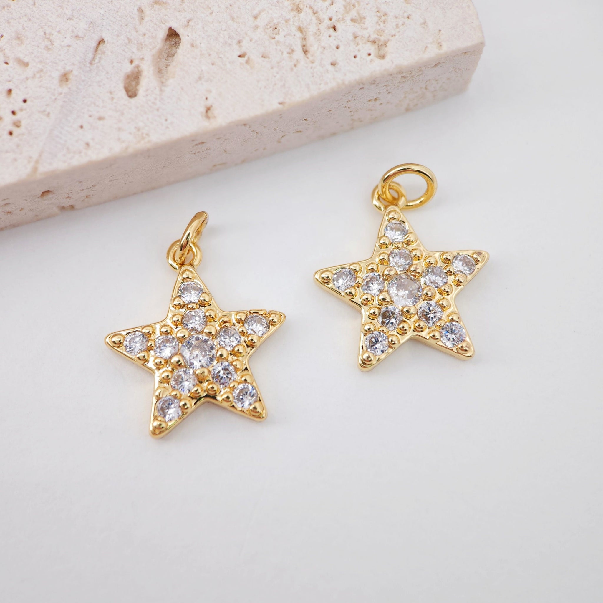 Dijes de estrella dorados, colgante de estrella cúbica con cristal pavé, chapado en oro de 18 quilates, pavé de circonita cúbica, dijes para hacer collares, accesorios de joyería S20612