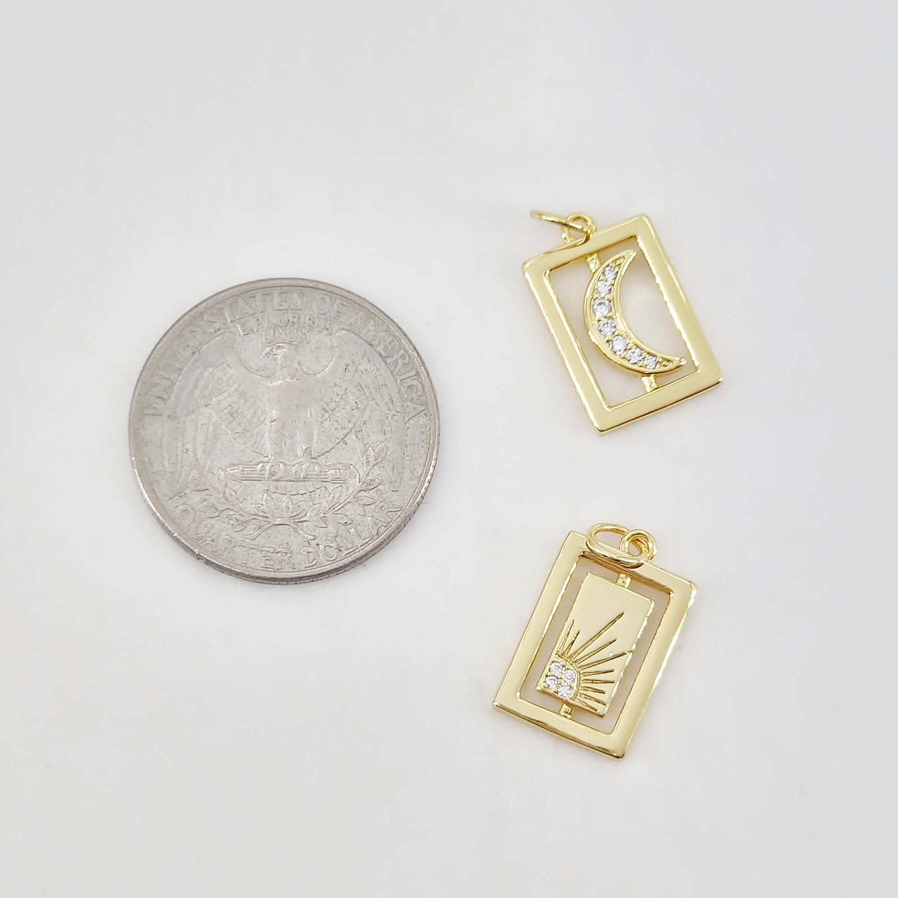 Dijes de cartas del Tarot en oro, colgante de Sol y Luna con micro pavé de circonitas, amuleto chapado en oro de 18 quilates, dijes para hacer collares, accesorios de joyería S20649
