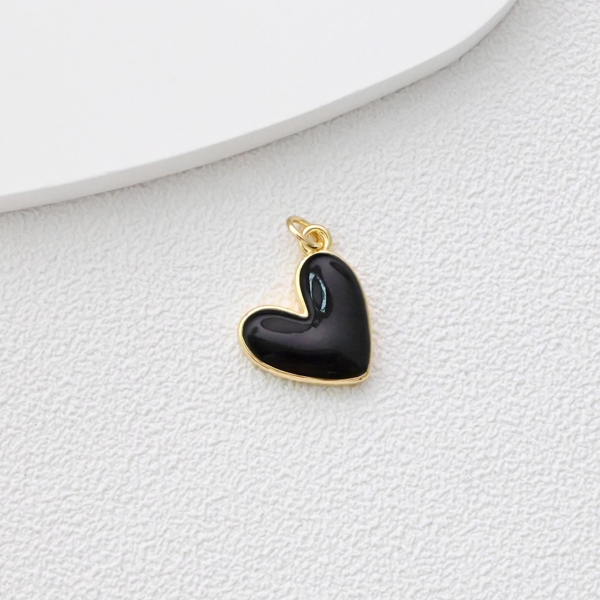 Dije de corazón, Dijes de corazón esmaltados, Dijes de amor, Colgante de corazón chapado en oro de 18 quilates, Fabricación de collares y pulseras, Accesorios de joyería S1363
