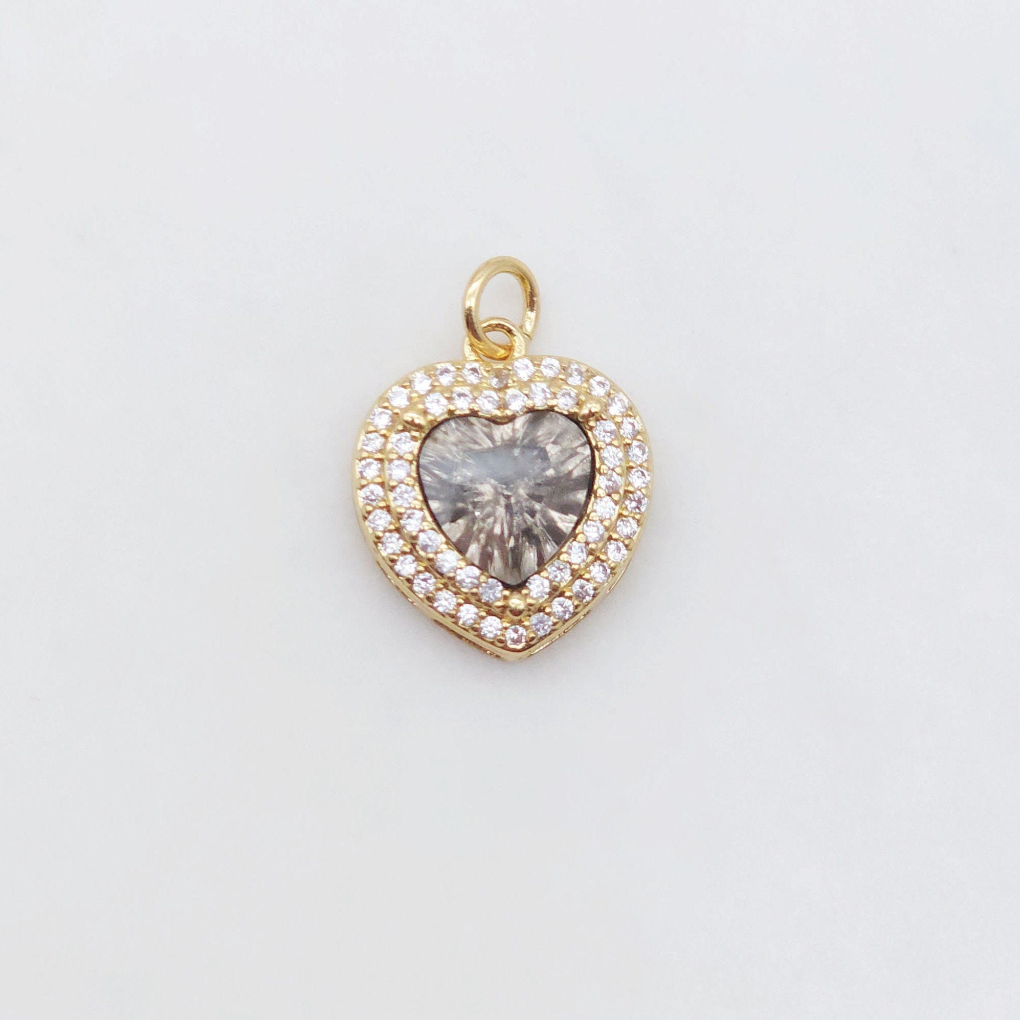 HogarDijes y colgantesDije de candado de corazón, colgante de corazón de cristal cúbico pavé, chapado en oro de 18 quilates, para hacer collares y pulseras, accesorios de joyería S20498