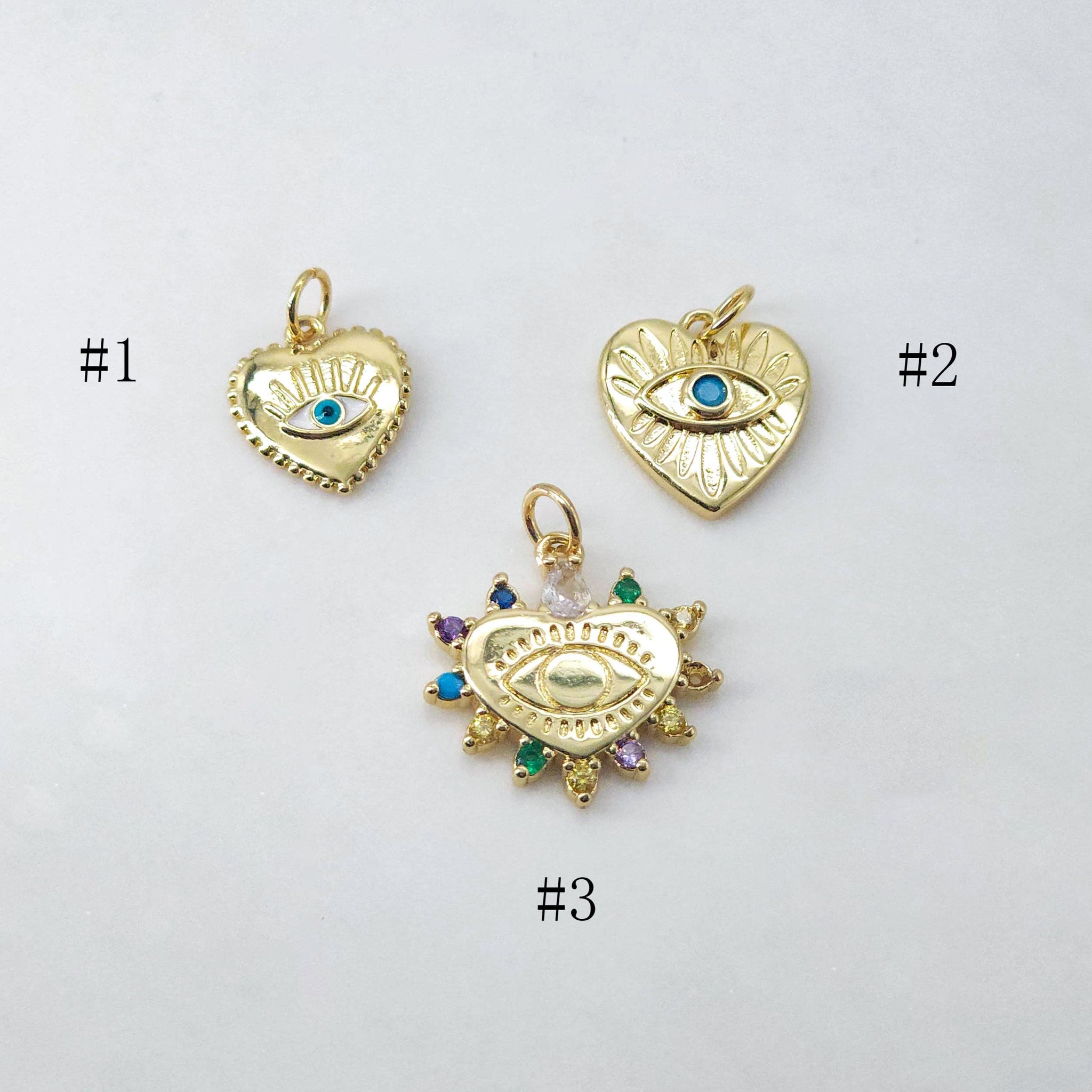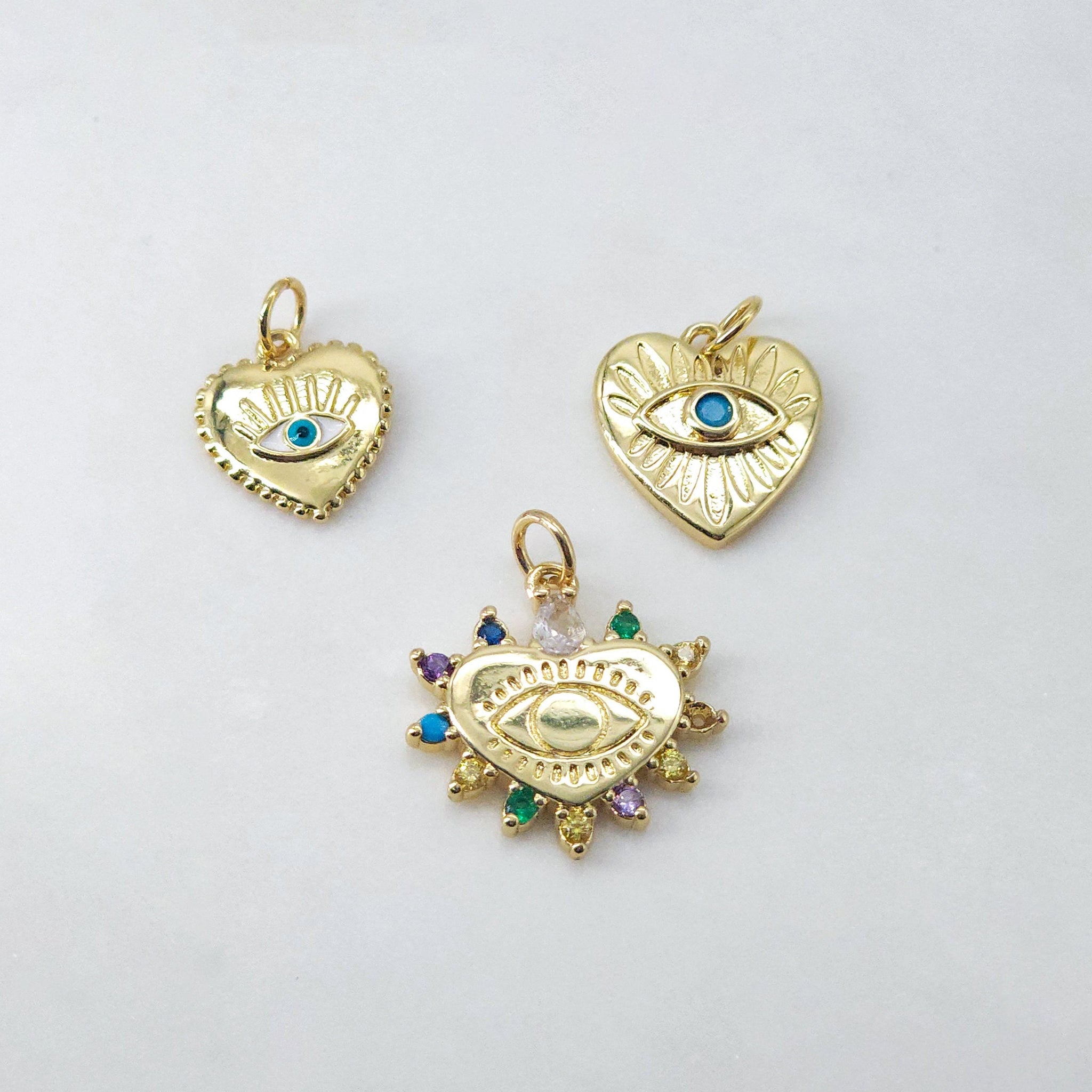 HogarDijes y colgantesDije de ojo malvado en forma de corazón, colgante de ojo esmaltado bañado en oro de 18 quilates, dije para hacer collares, accesorios de joyería S20624