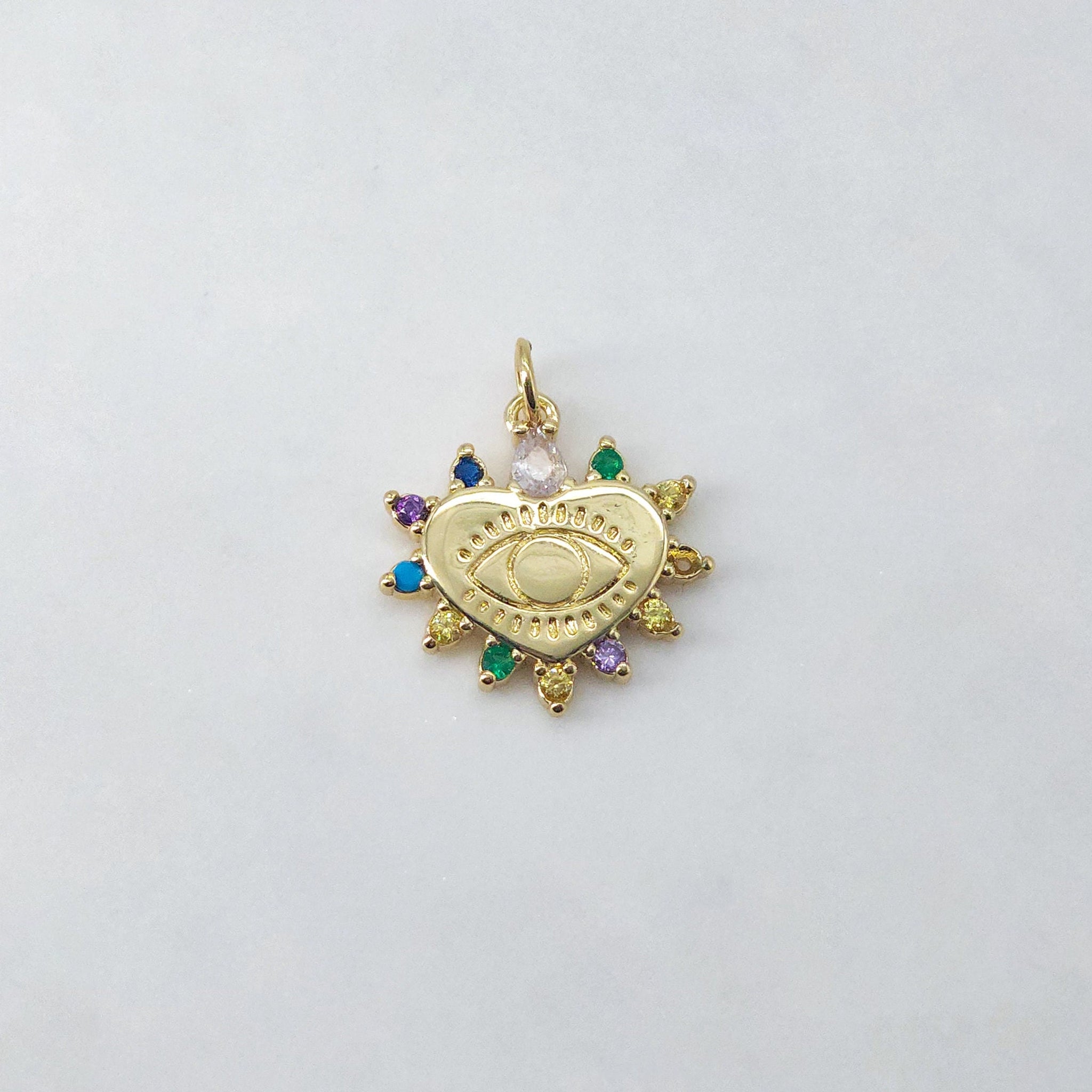 Dije de ojo malvado en forma de corazón, colgante de ojo esmaltado bañado en oro de...