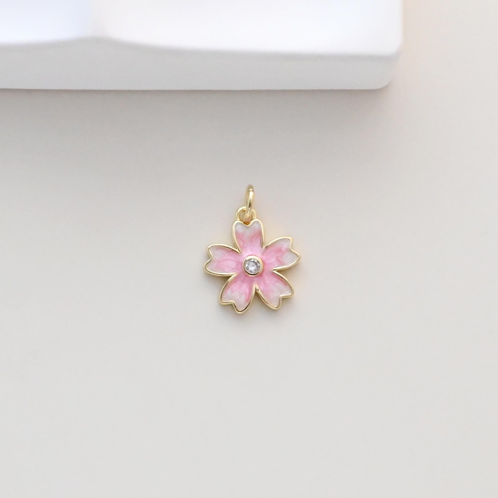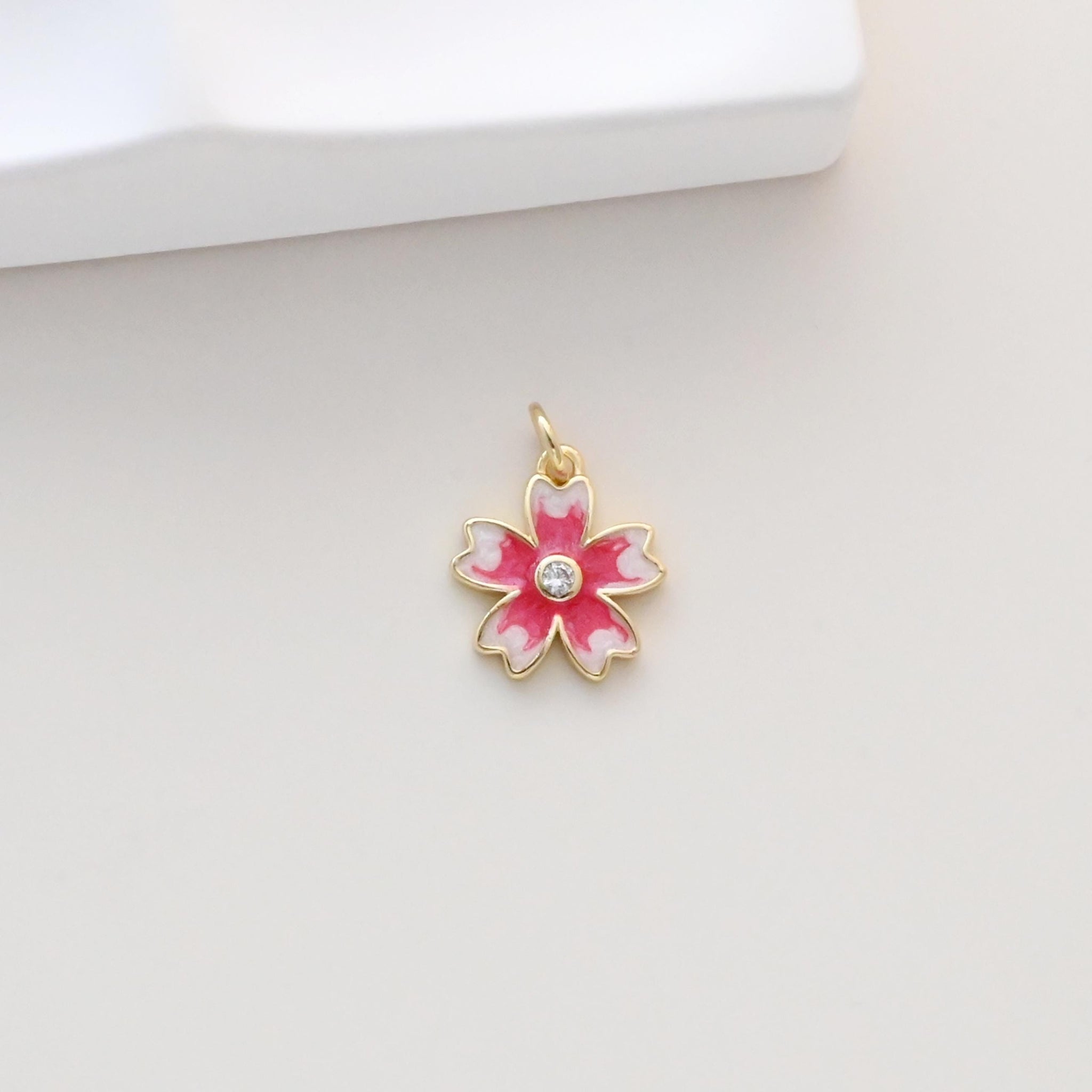 HogarDijes y colgantesDijes de flores esmaltadas pequeñas, colgante chapado en oro de 18 quilates, dijes para collares y pendientes, accesorios para bisutería S1319