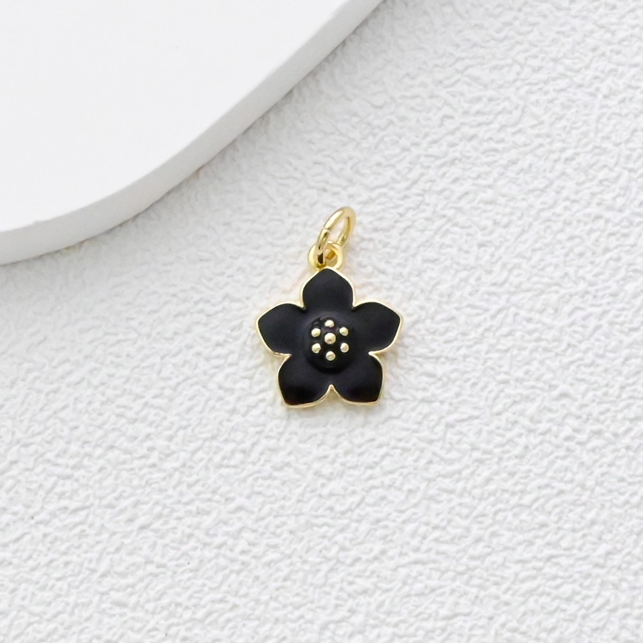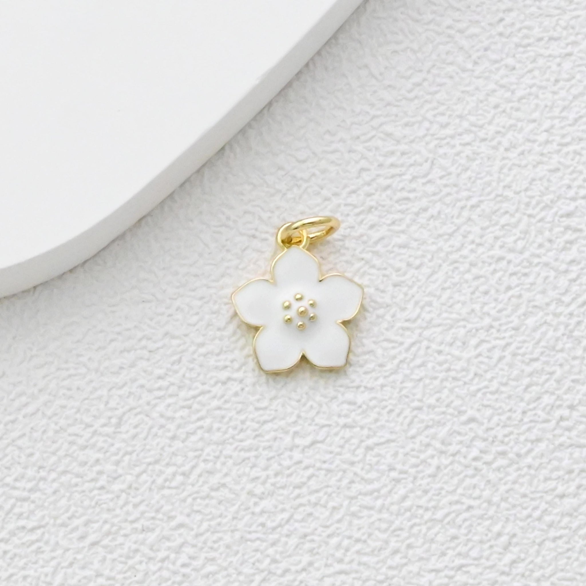 HogarDijes y colgantesDijes de flores pequeñas de esmalte, colgante chapado en oro de 18 quilates, dijes para collares y pendientes, accesorios para bisutería S1357