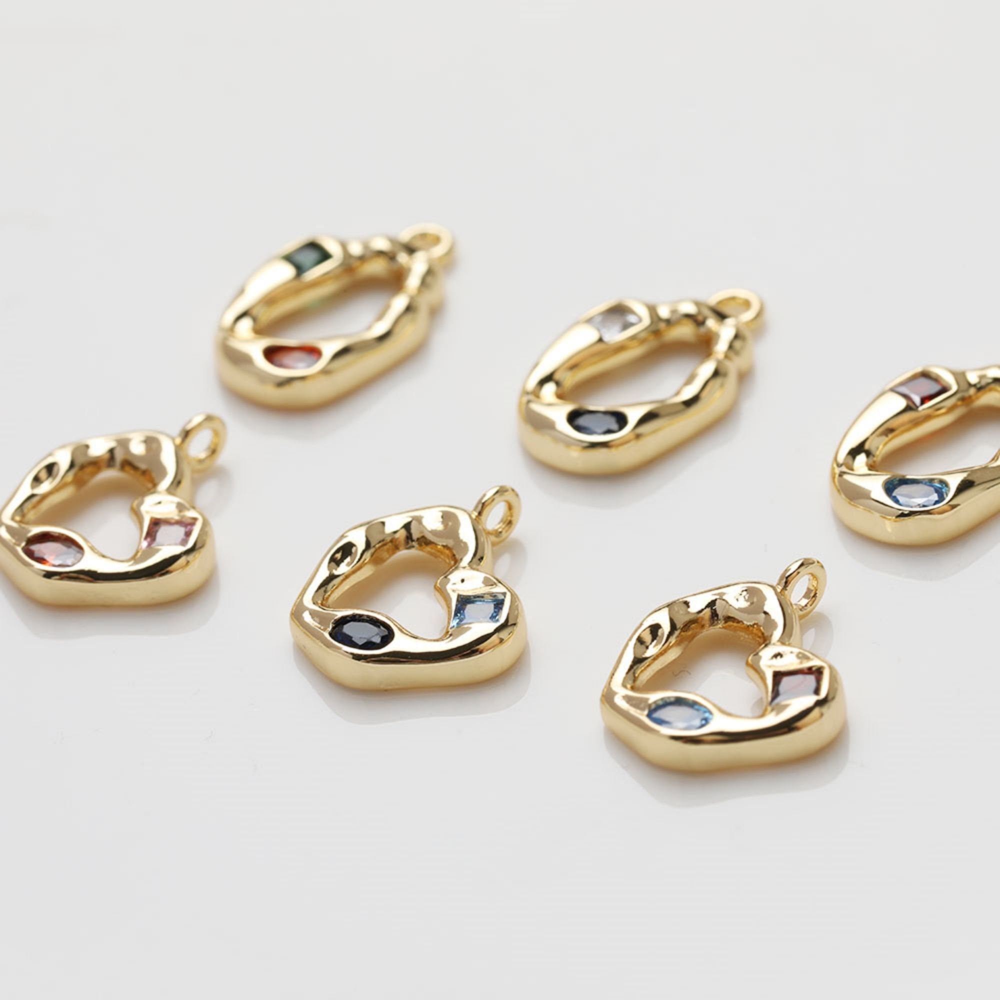 Colgante de circonitas cúbicas de colores, ovalado irregular, con forma de corazón, calado, chapado en oro de 18 quilates, GZ382