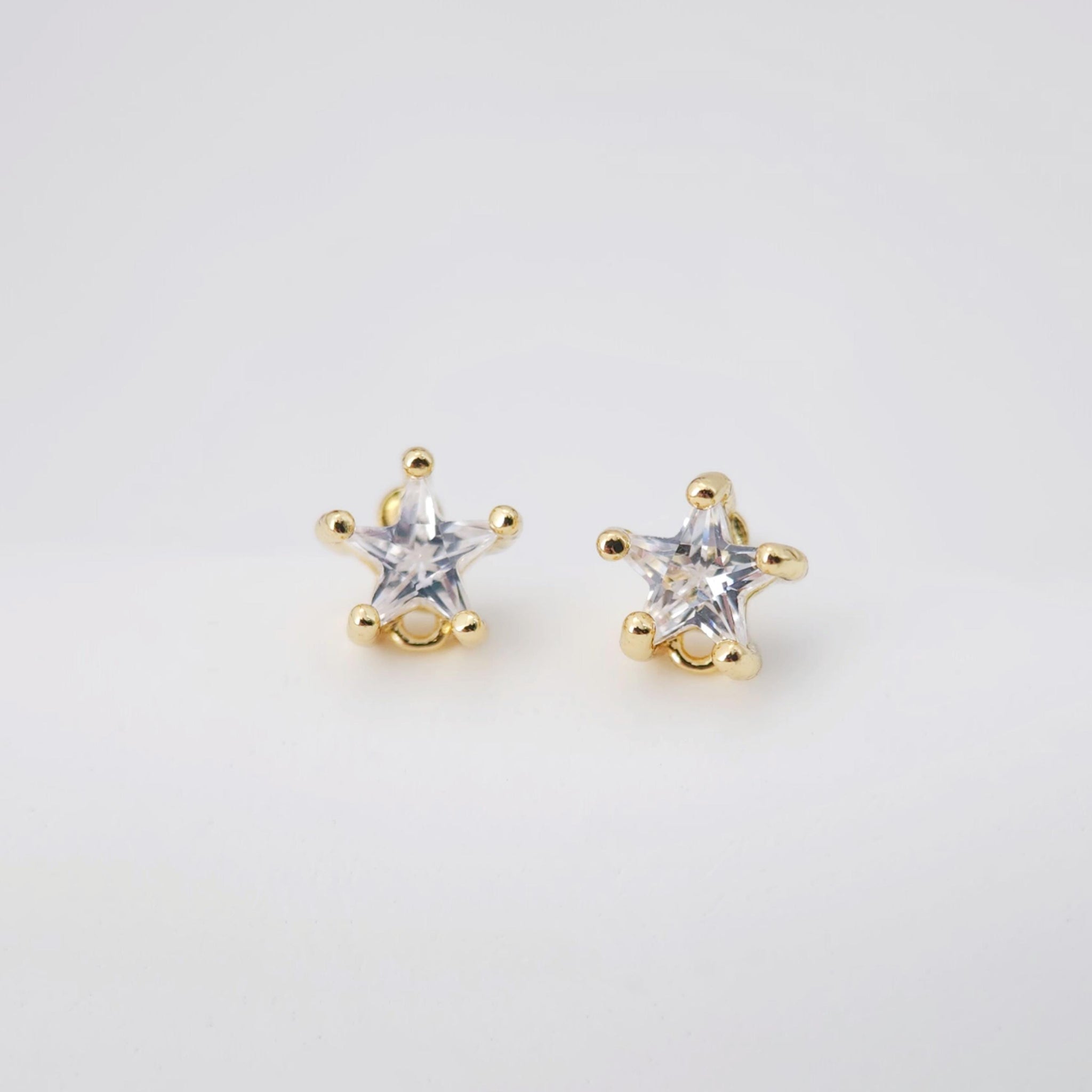Poste de oro de 18 quilates con pavé de circonitas cúbicas estrelladas de 9 x 9,3...