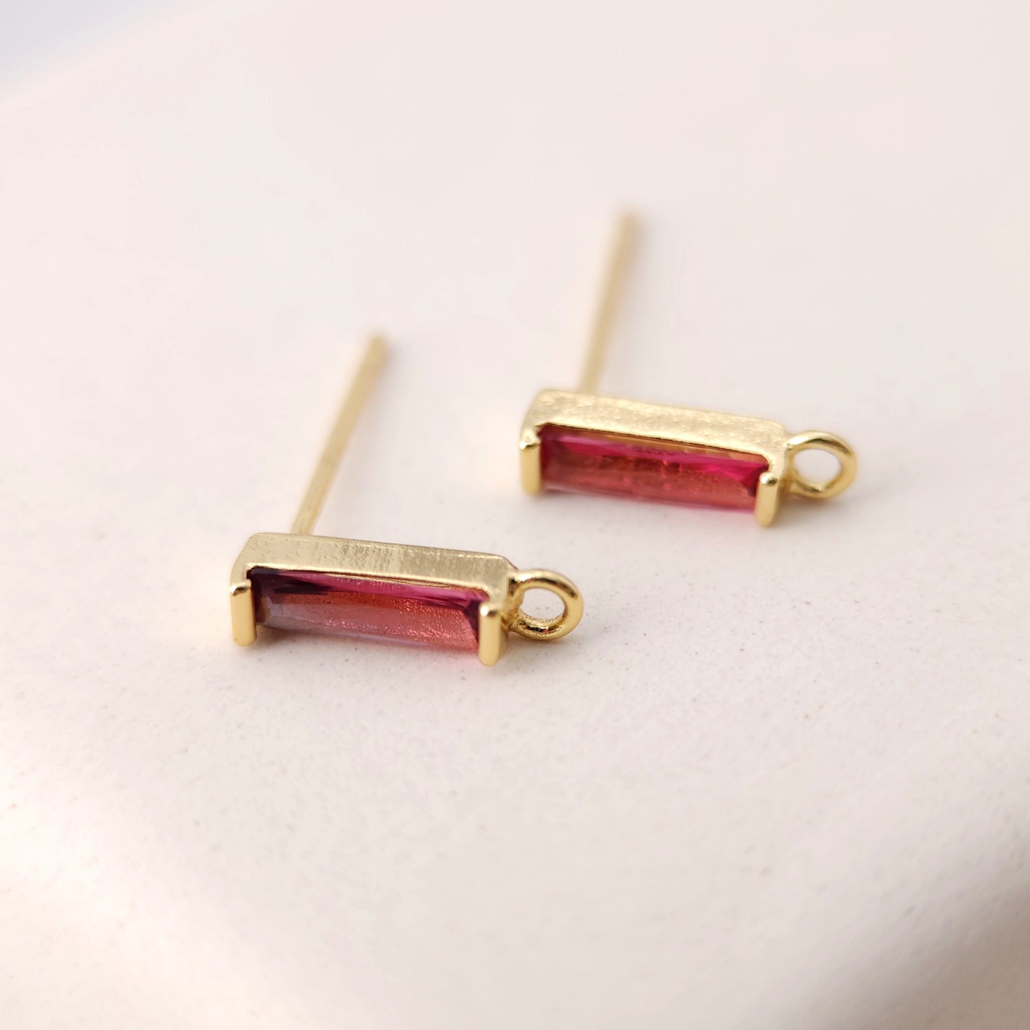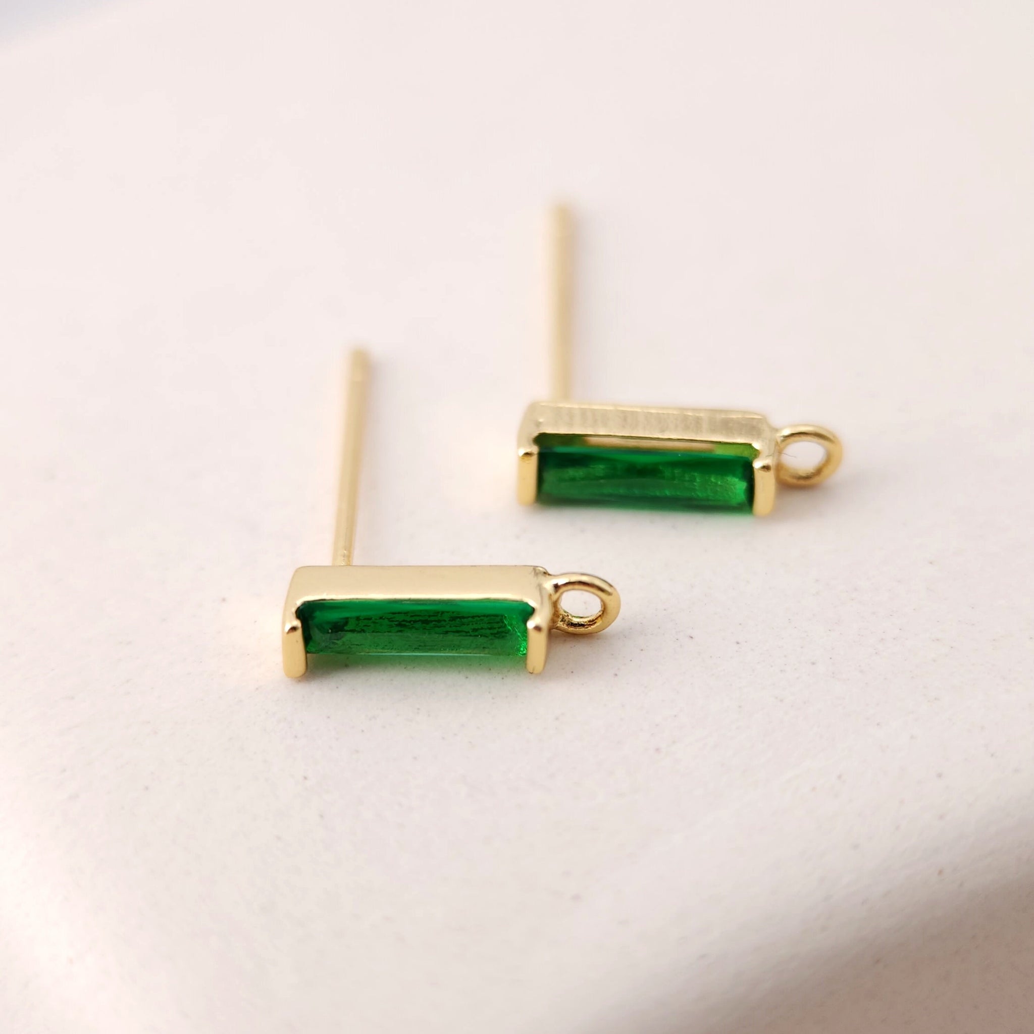 HogarPostes para orejas/Tachuelas4 pendientes rectangulares con pasadores, pavé de circonitas rojas, verdes y transparentes, de plata S925, sin níquel, chapado en oro de 18 quilates, S1194
