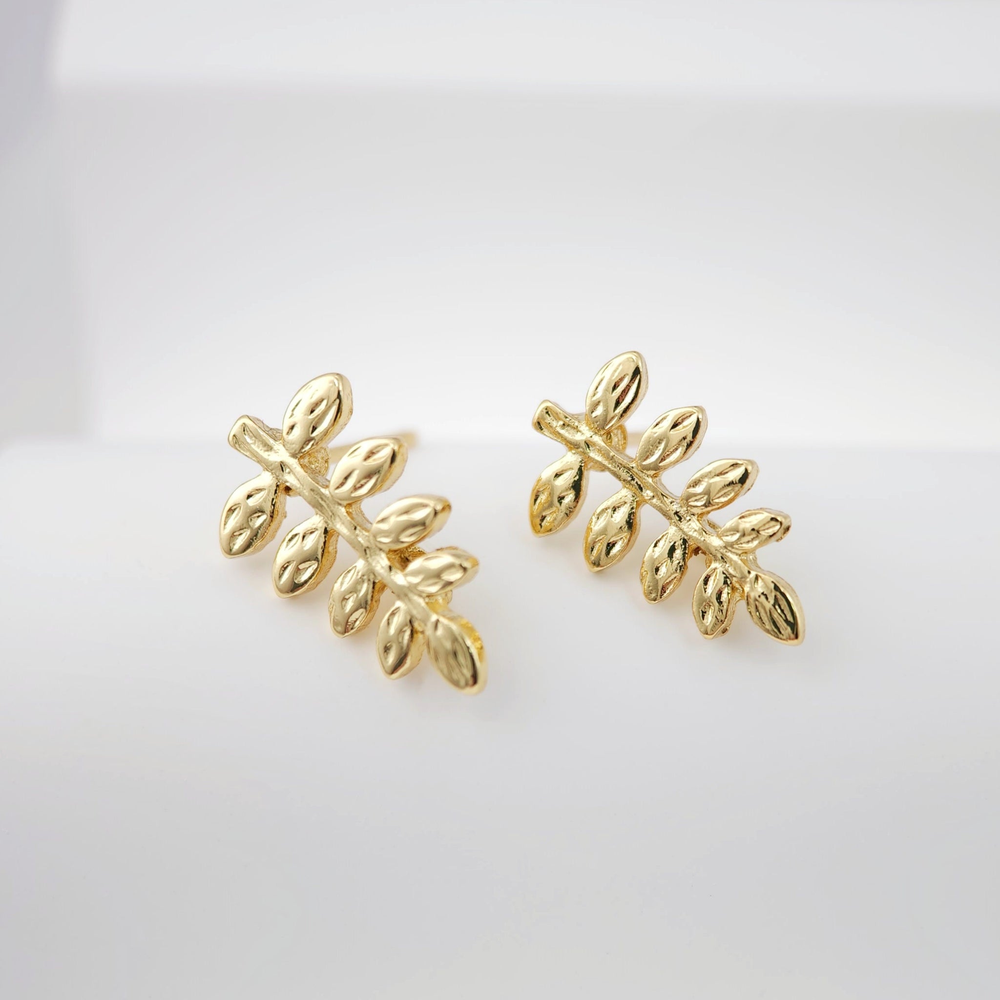 HogarPostes para orejas/TachuelasPoste para arete de hoja con aro, arete de botón de latón chapado en oro auténtico de 18 quilates con aro, sin níquel, accesorio para arete S1103