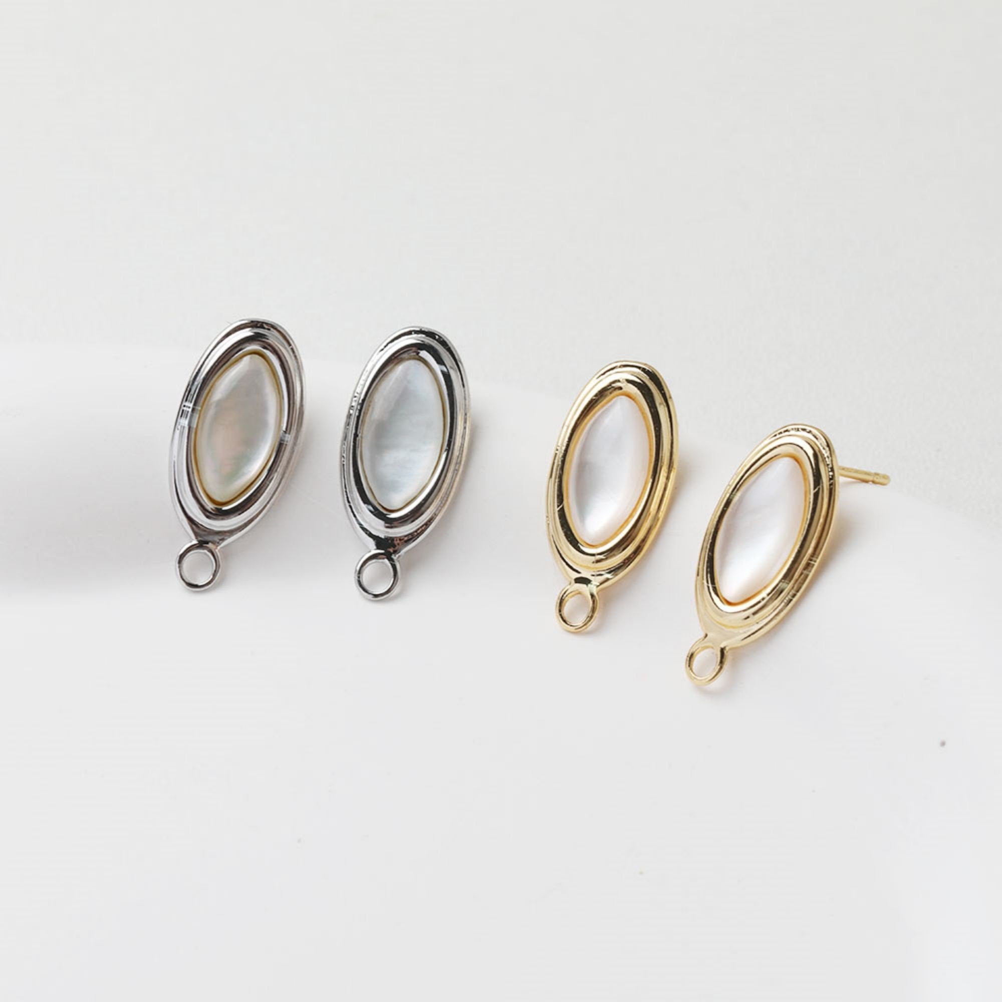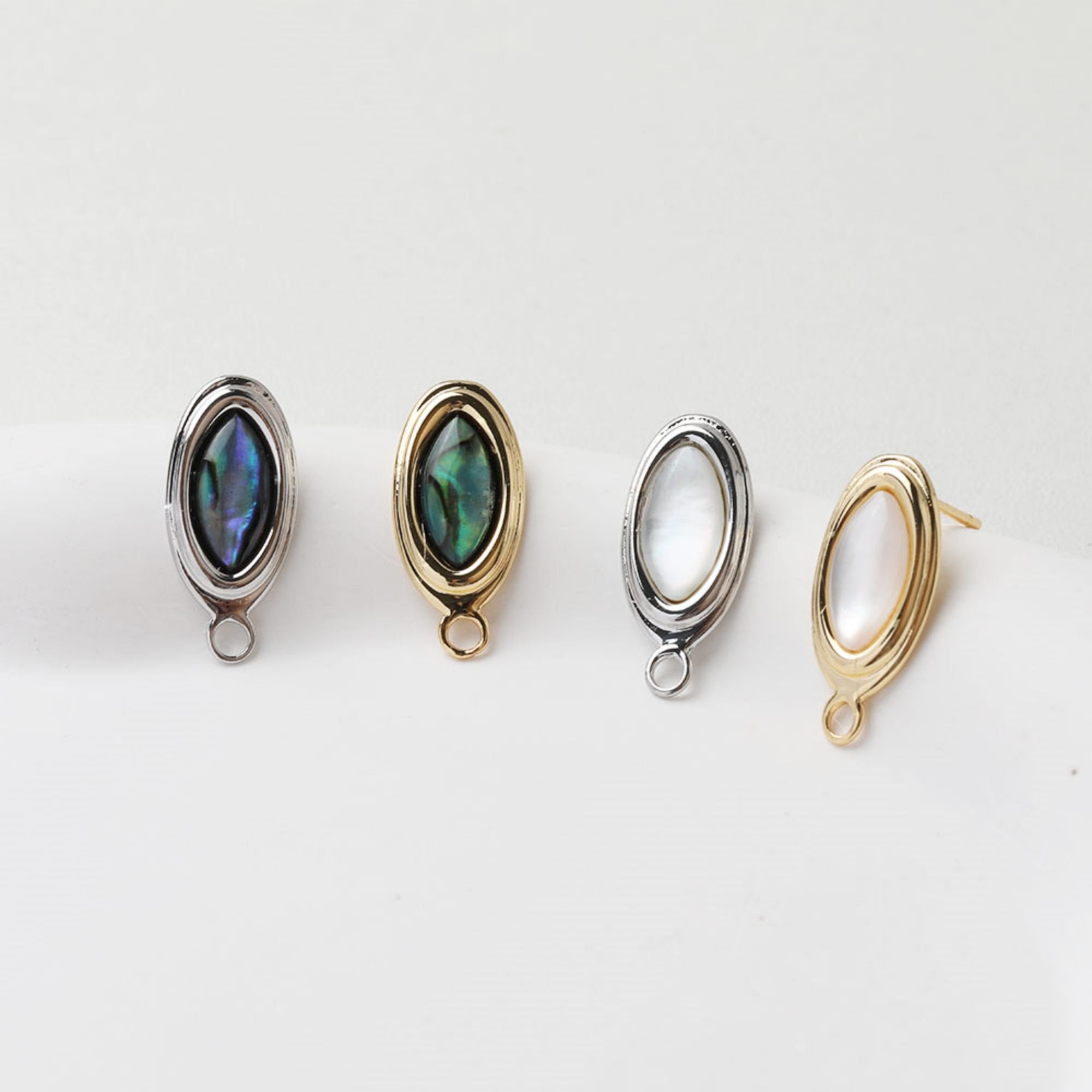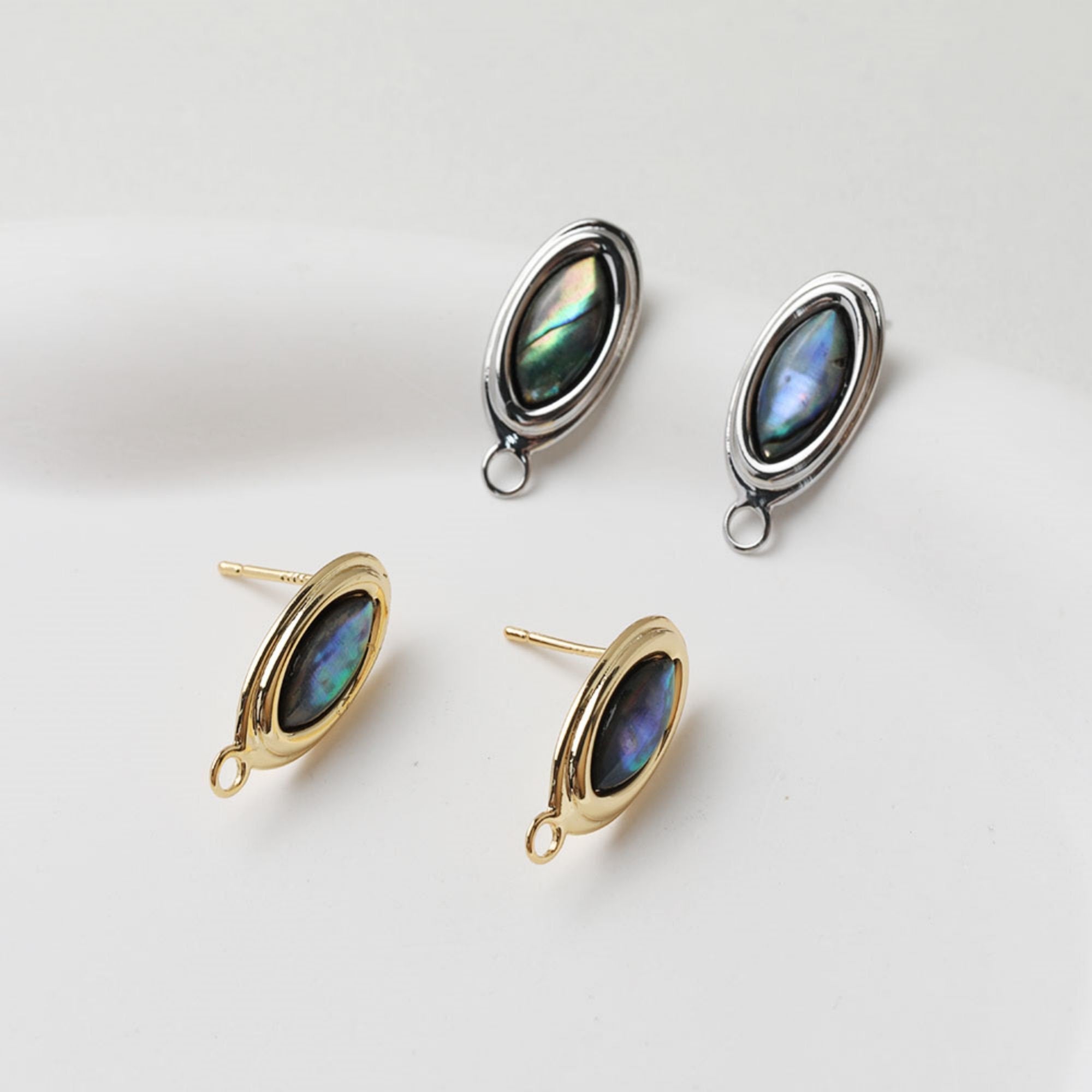 Poste para aretes de concha ovalada, chapado en oro de 14 quilates, concha de abulón, alfiler de plata S925 sin níquel, fornitura hipoalergénica GT040
