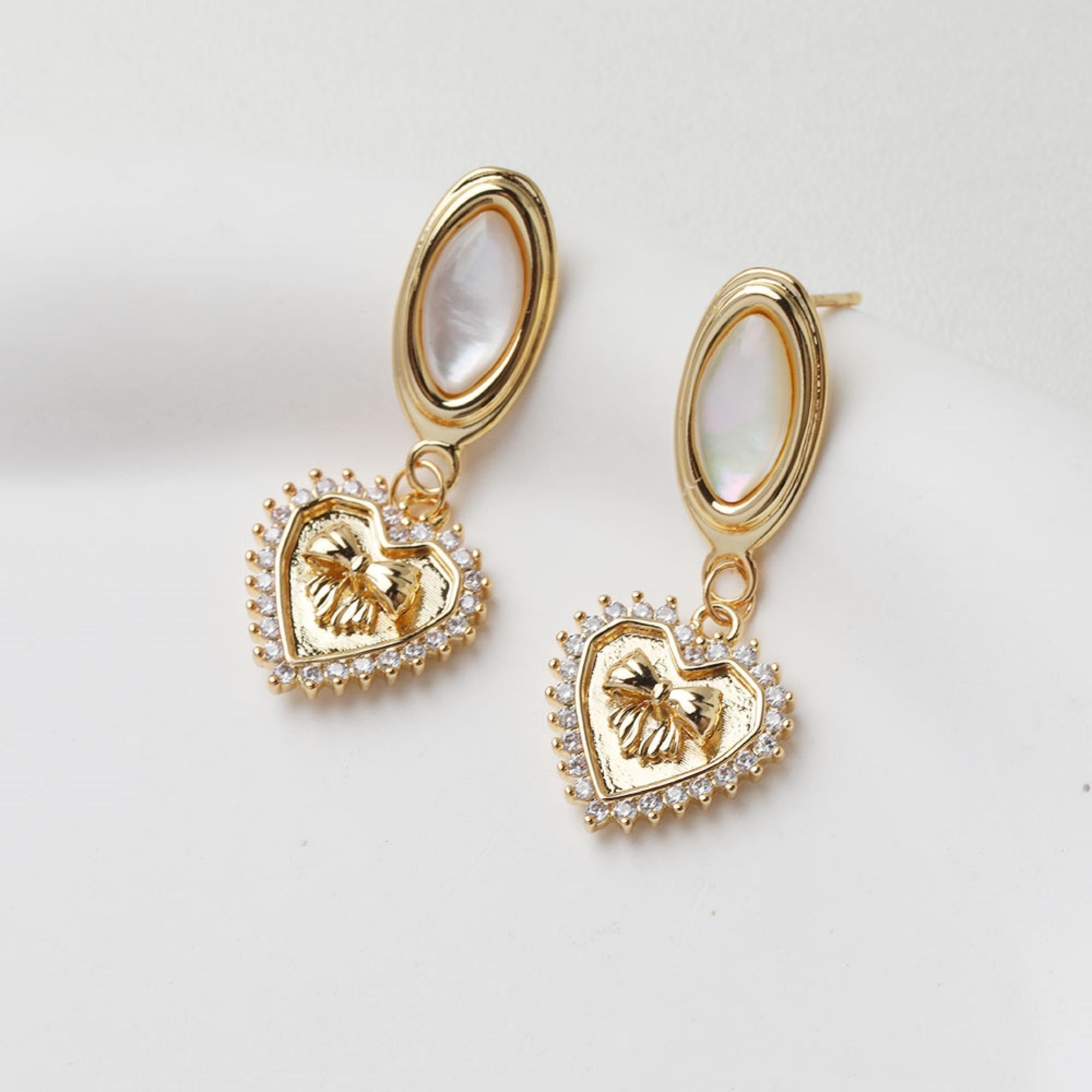 Poste para aretes de concha ovalada, chapado en oro de 14 quilates, concha de abulón, alfiler...