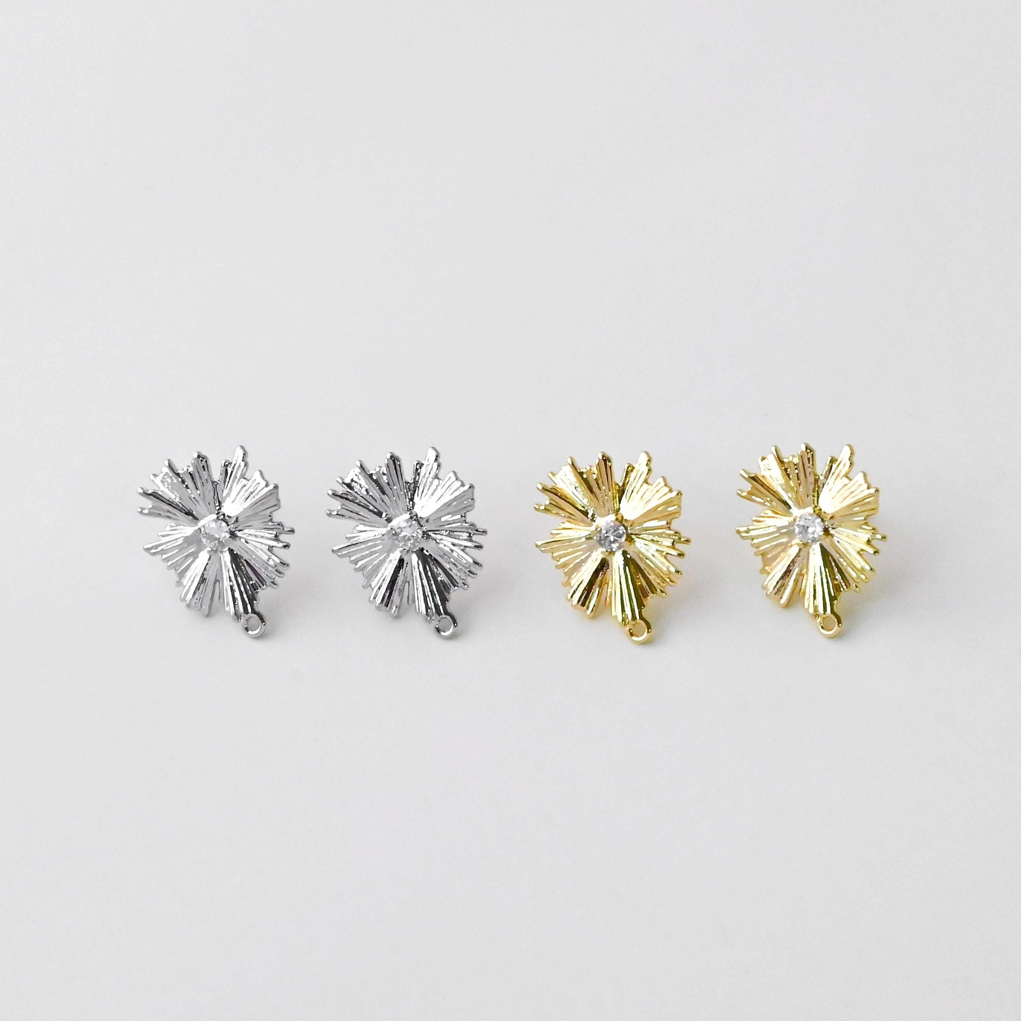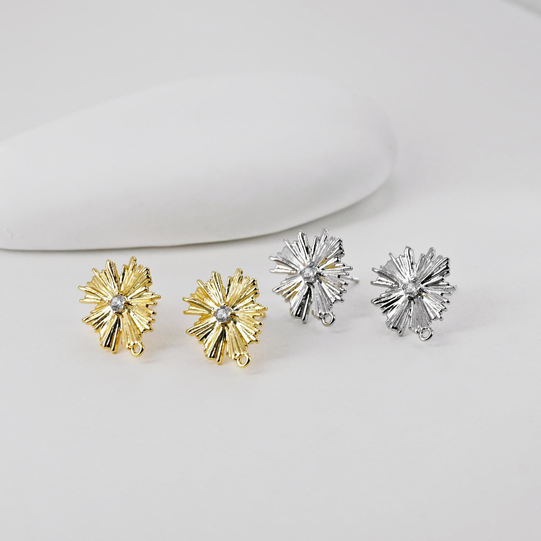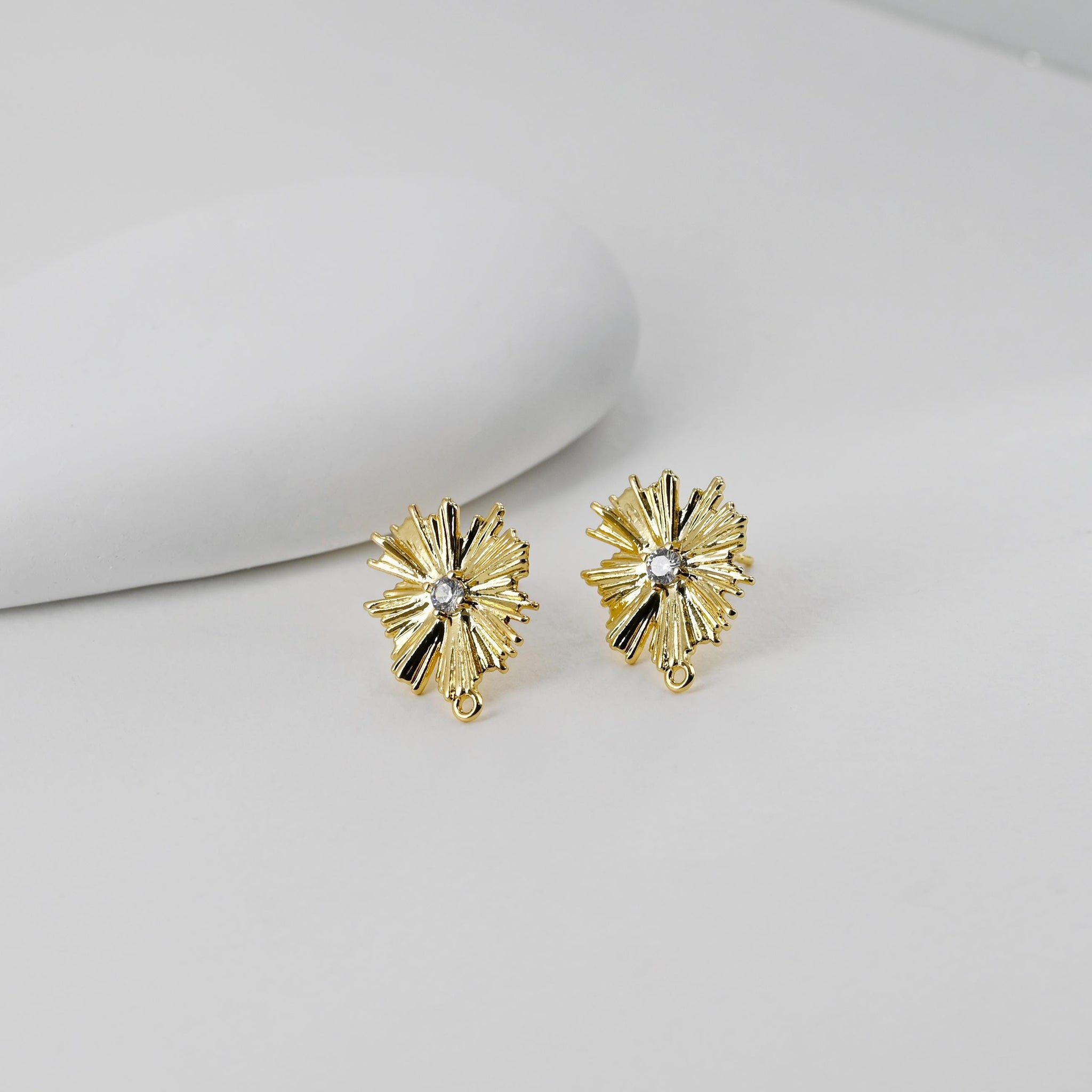 Poste para pendientes con flor plisada, pendiente de botón de latón chapado en oro auténtico de 18 quilates con aro, pasador de plata S925, pavé de circonitas, sin níquel, fornitura para pendientes D0408