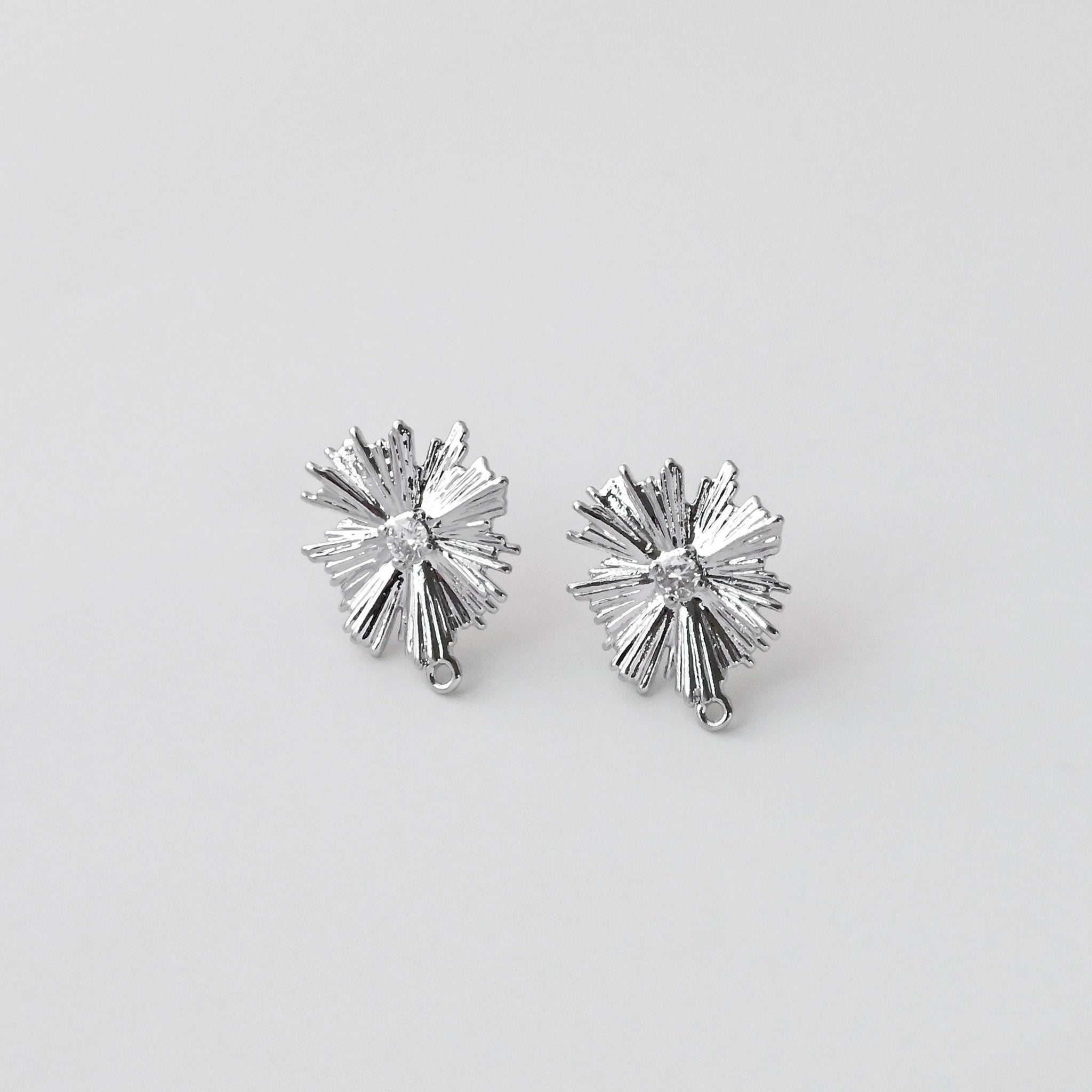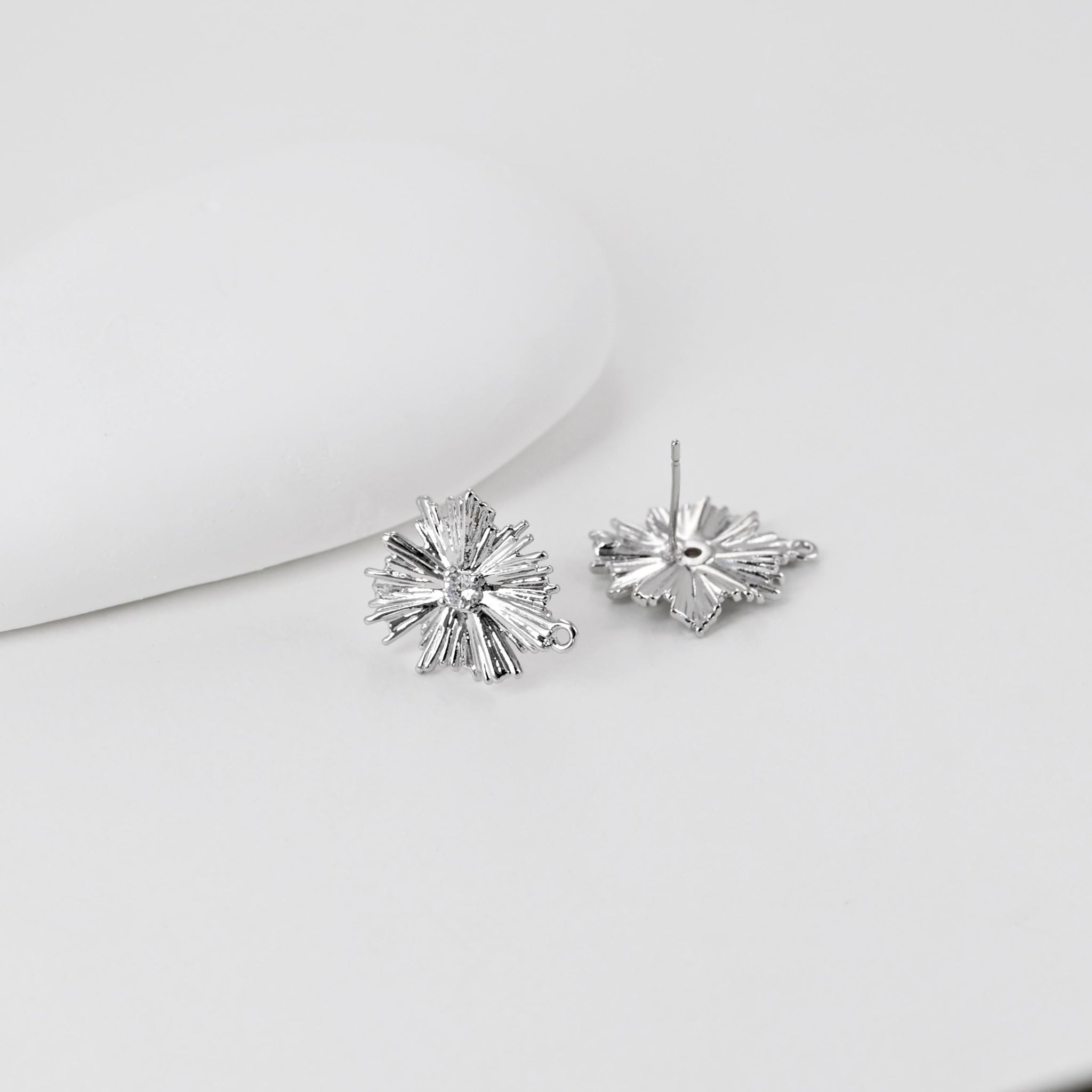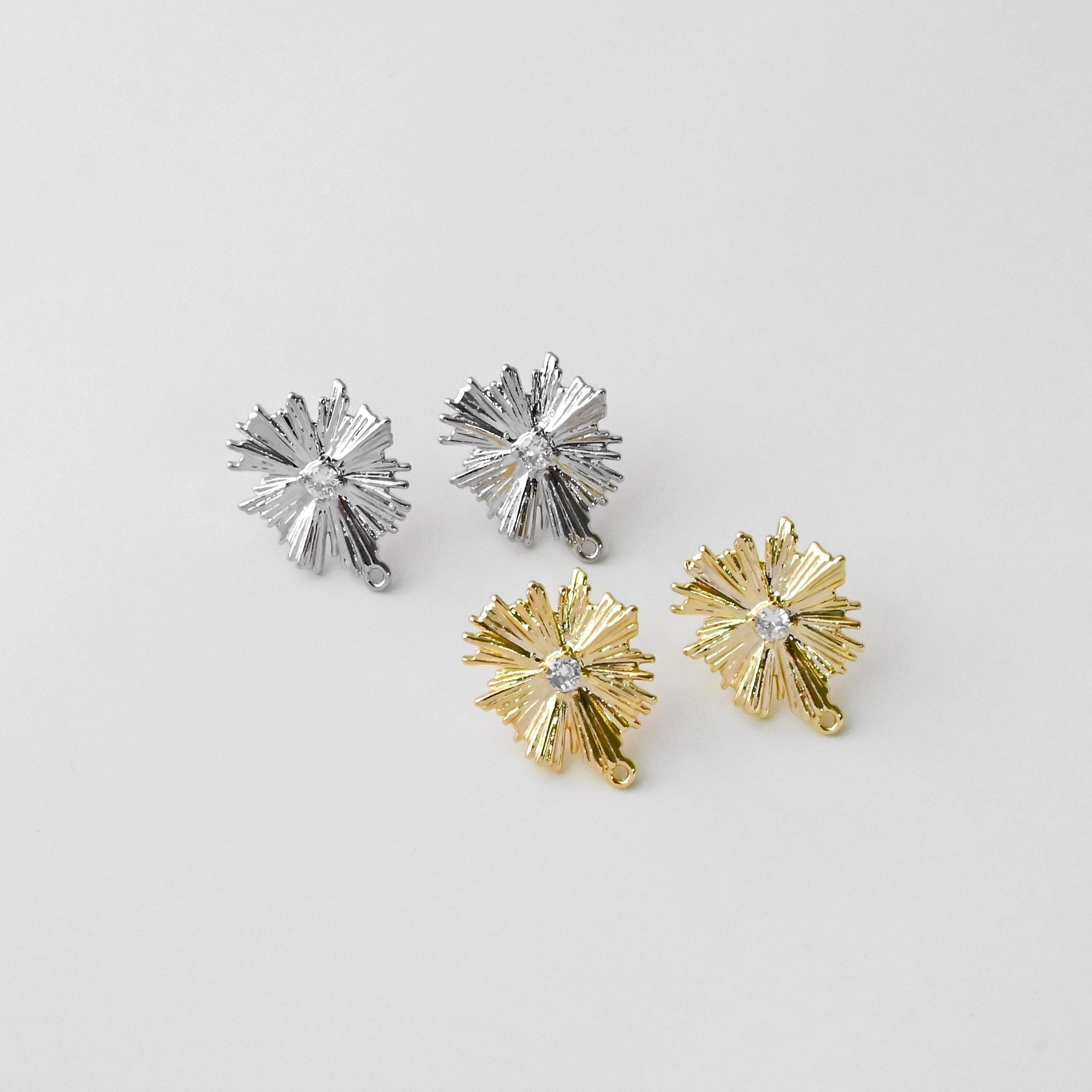 Poste para pendientes con flor plisada, pendiente de botón de latón chapado en oro auténtico de 18 quilates con aro, pasador de plata S925, pavé de circonitas, sin níquel, fornitura para pendientes D0408
