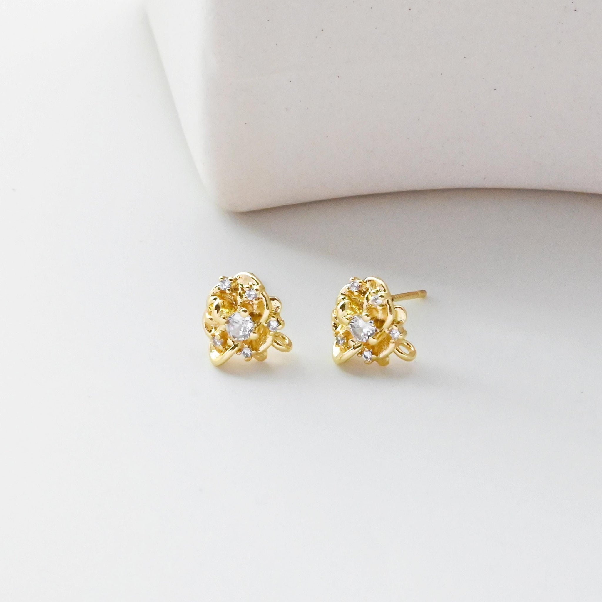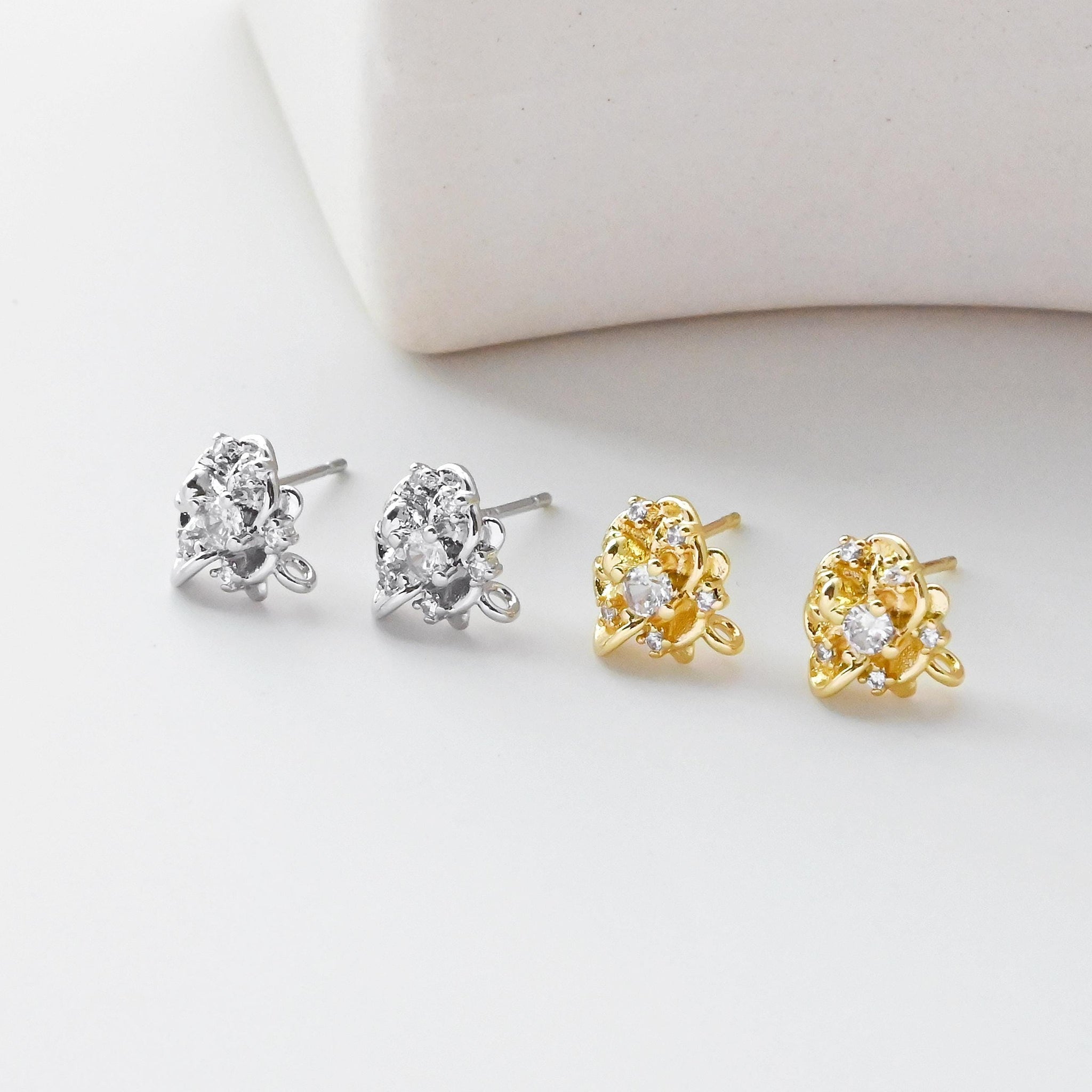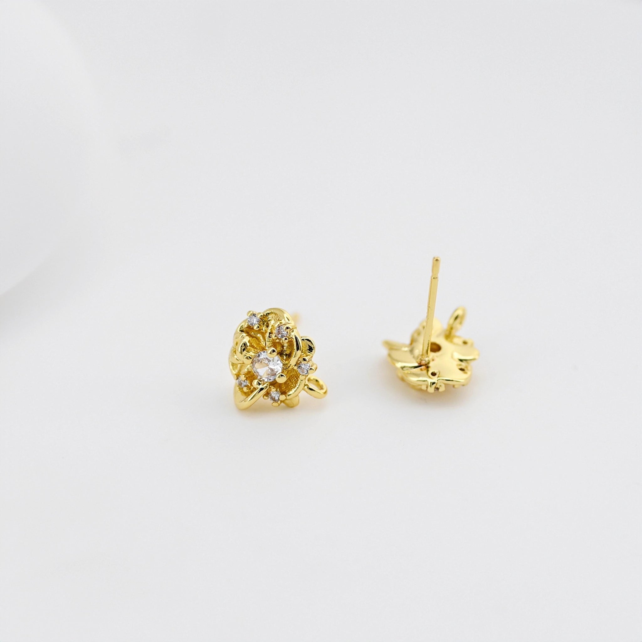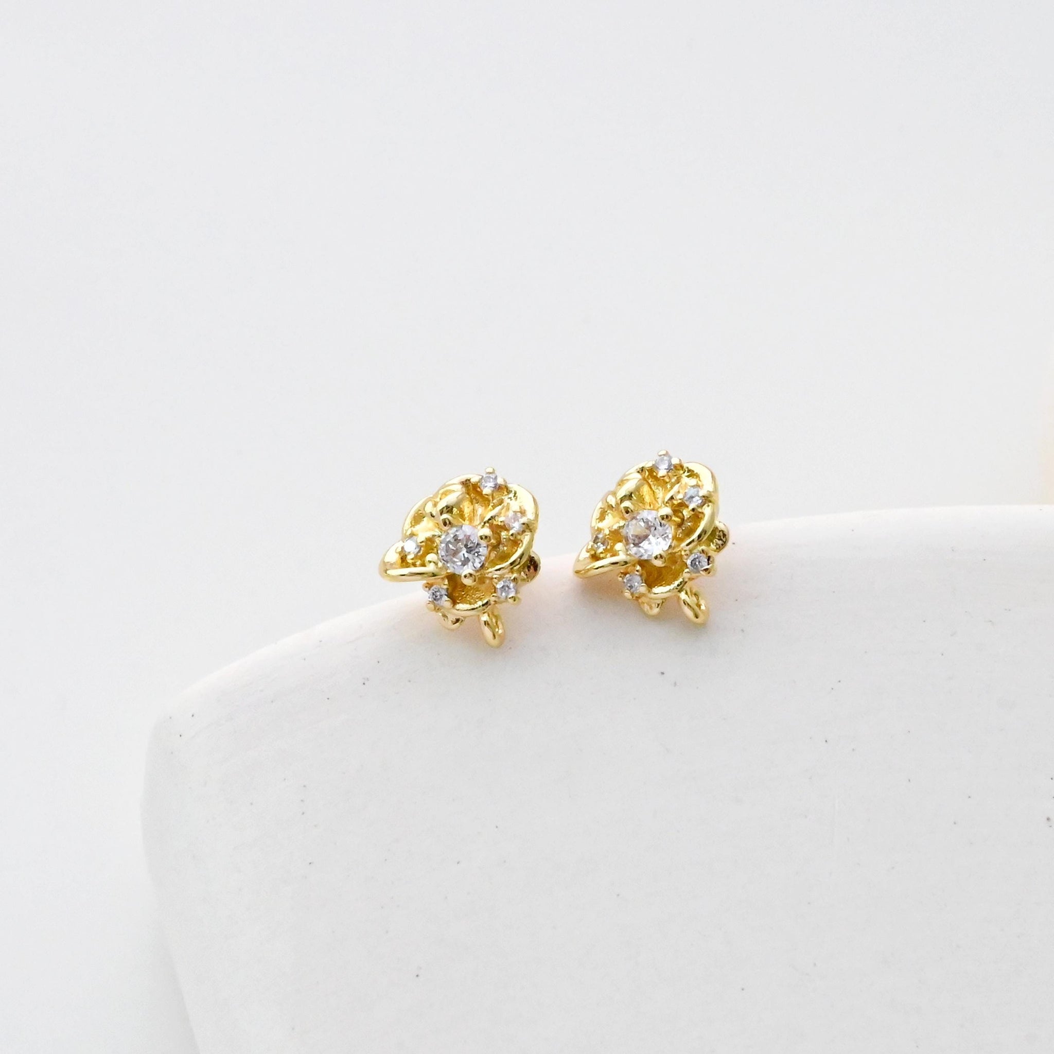HogarPostes para orejas/TachuelasPoste para pendientes con forma de rosa, pendiente de botón de latón chapado en oro auténtico de 18 quilates con aro, pavé de circonitas cúbicas, sin níquel, fornitura D0450