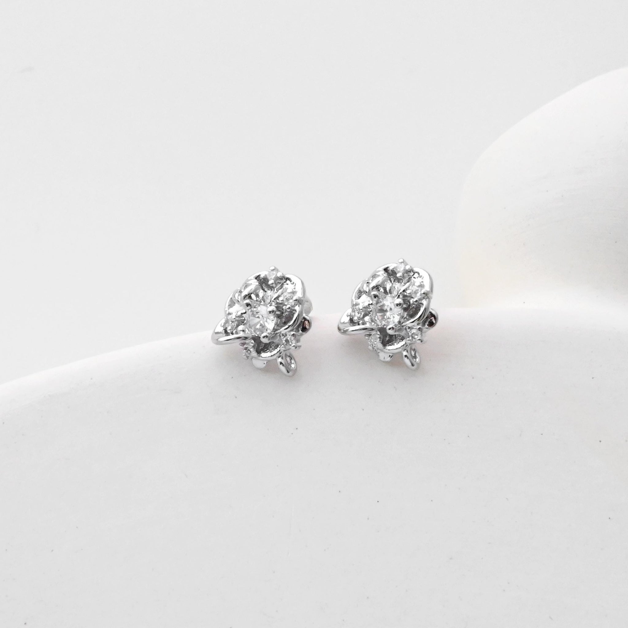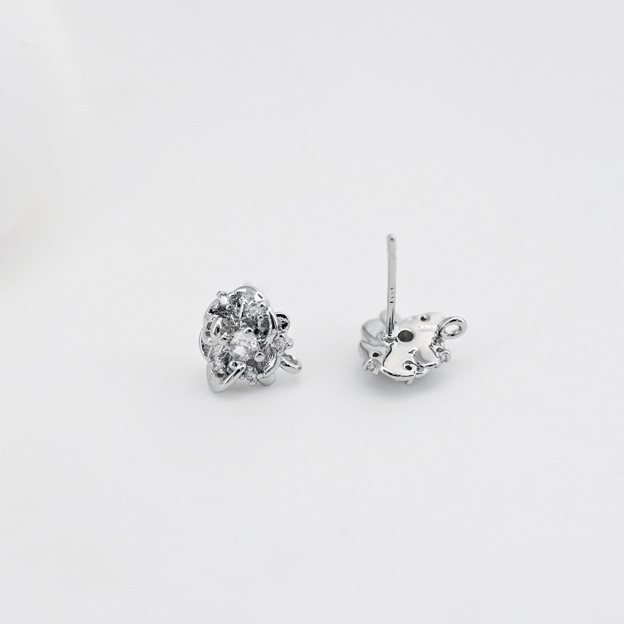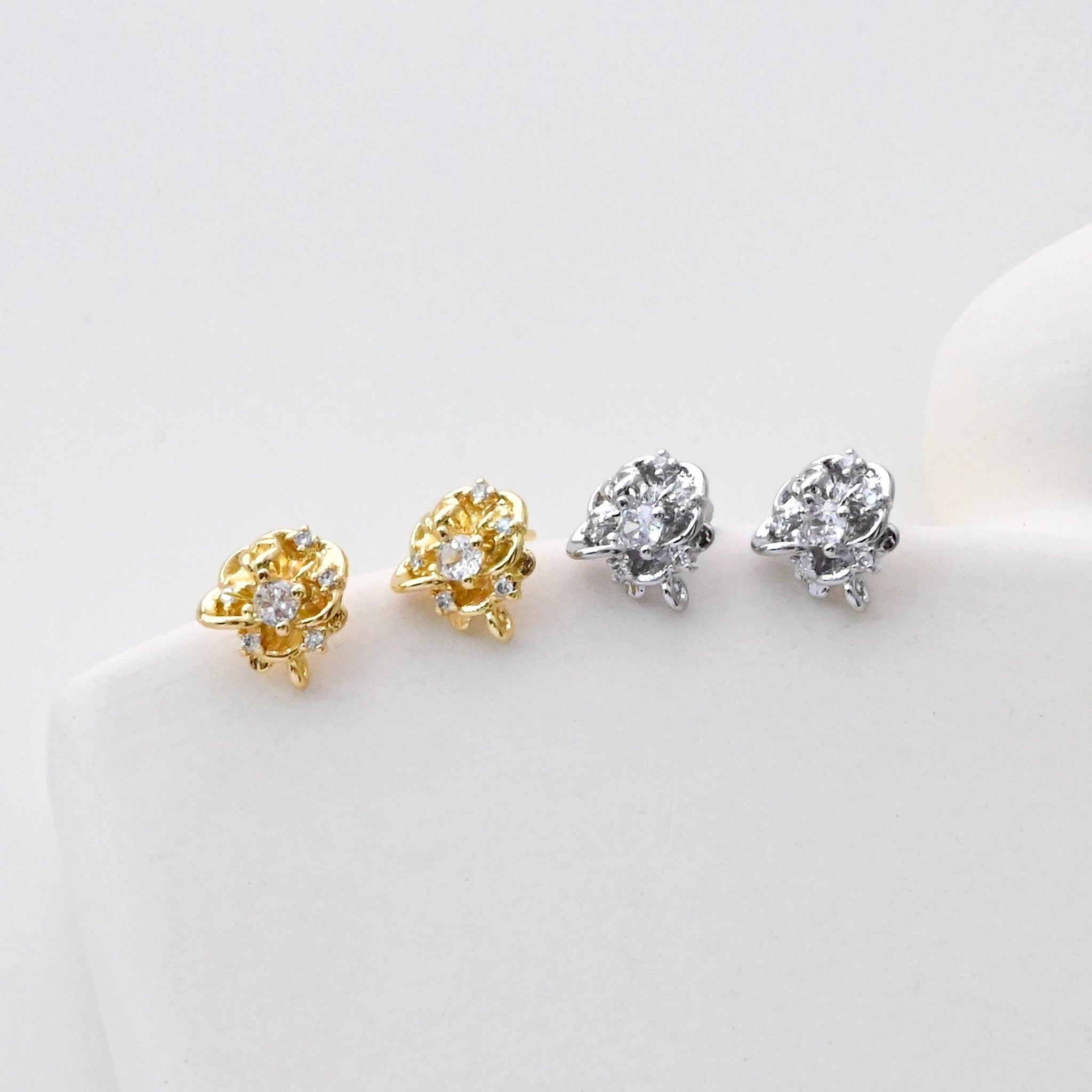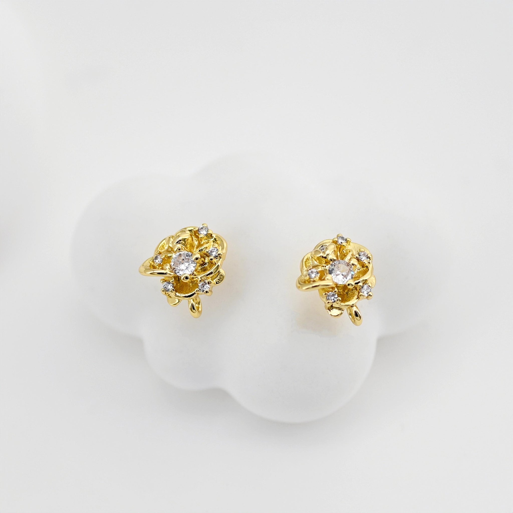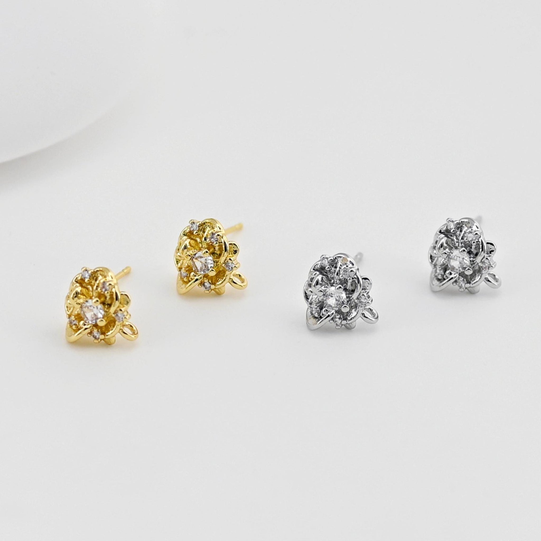 Poste para pendientes con forma de rosa, pendiente de botón de latón chapado en oro auténtico de 18 quilates con aro, pavé de circonitas cúbicas, sin níquel, fornitura D0450