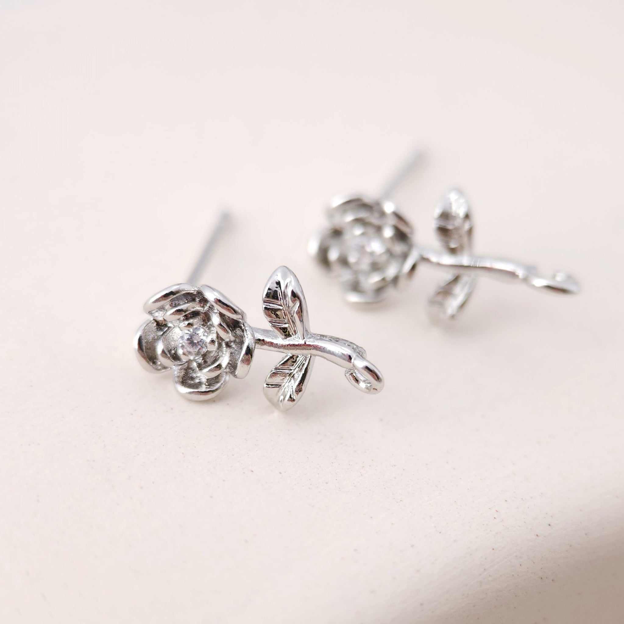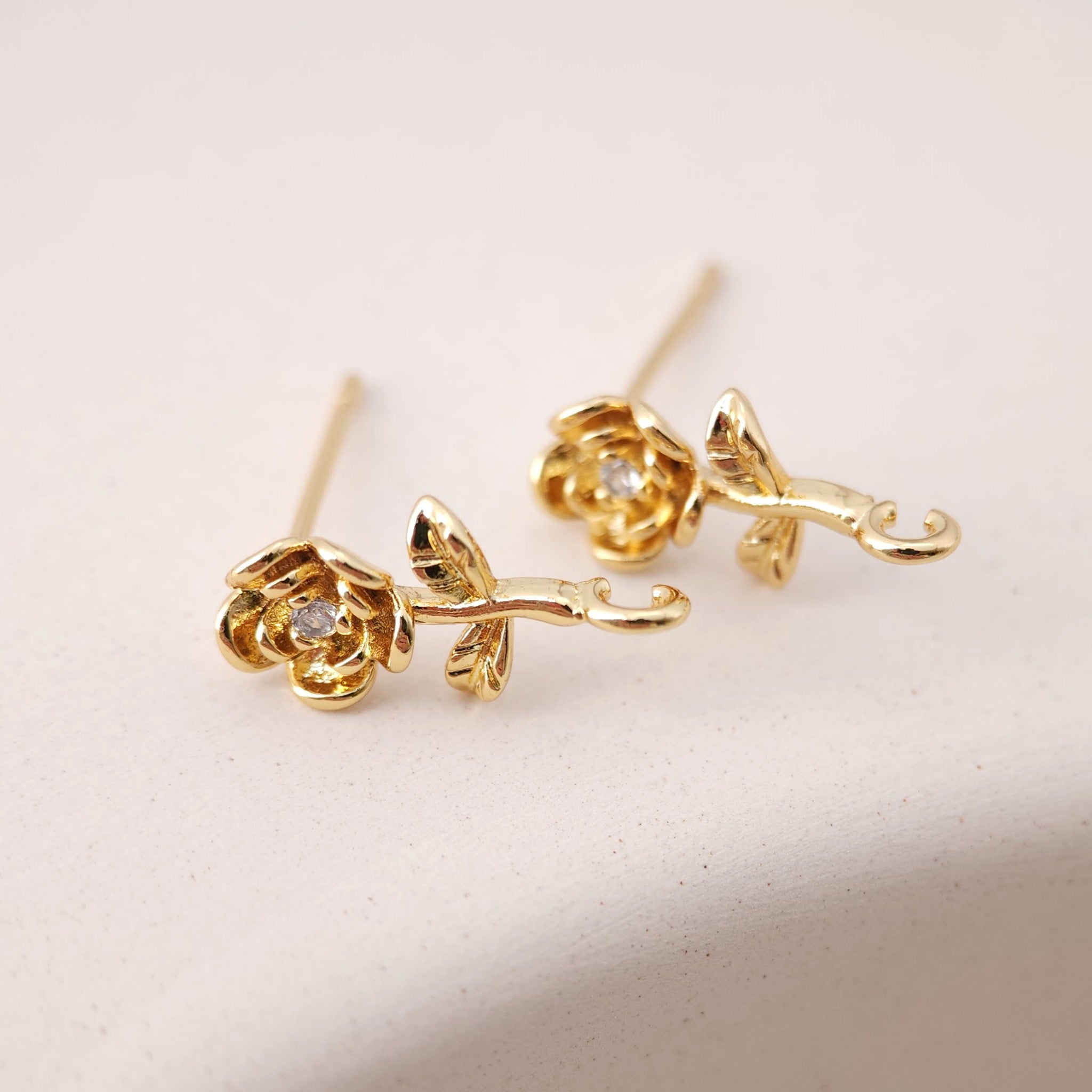 Poste para pendientes con forma de rosa, pendiente de botón de latón chapado en oro auténtico...