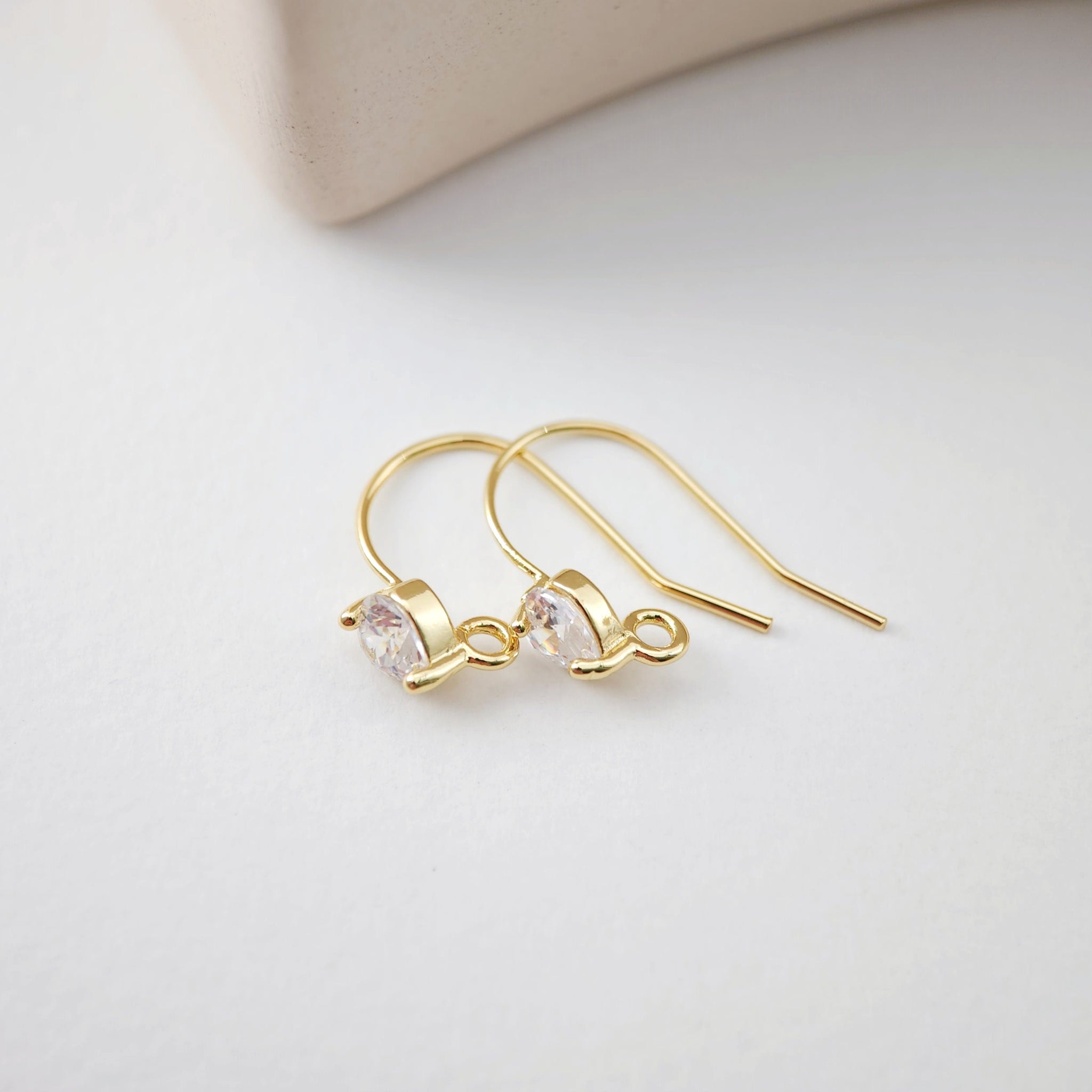 Alambres para pendientes chapados en oro de 18 quilates, ganchos redondos con pavé cúbico, sin níquel, ganchos para pez, alambres para bisutería D0170