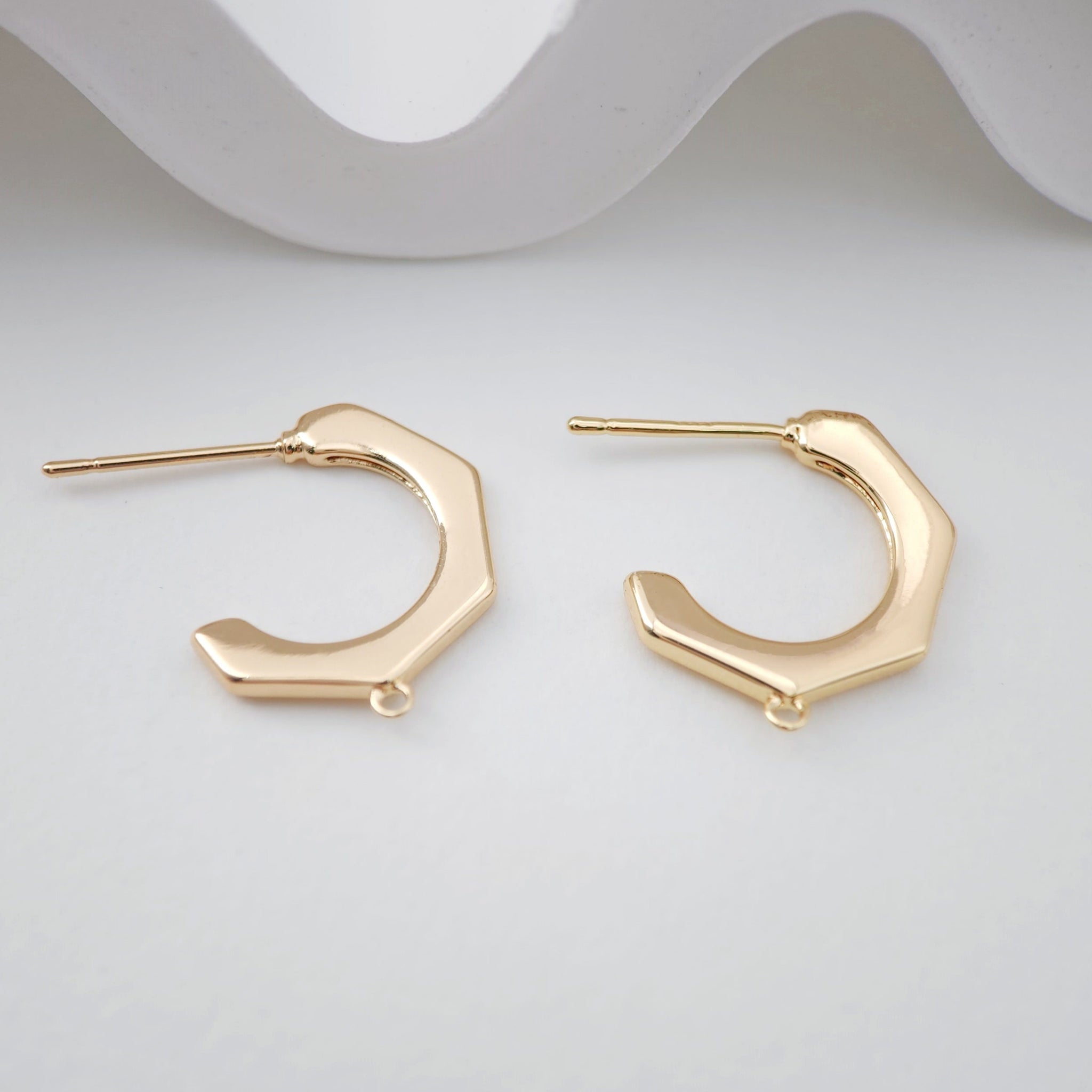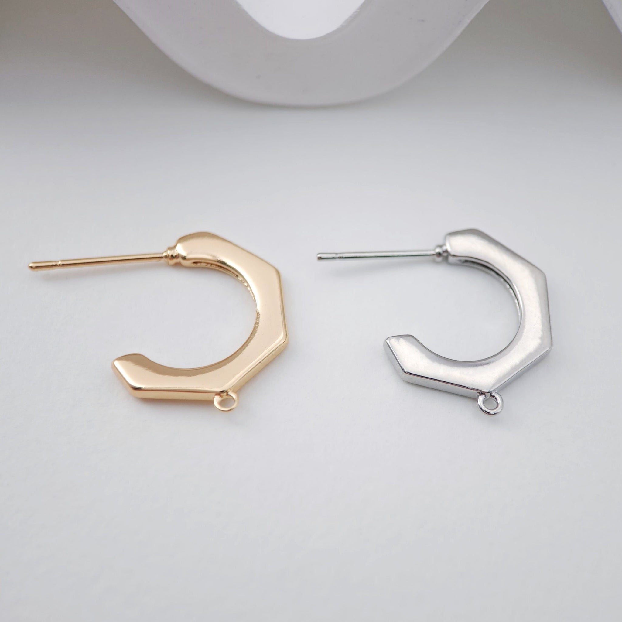 Pendientes en forma de C con aro, oro y plata de 18 quilates, sin níquel, con aro, hipoalergénicos, ZX200