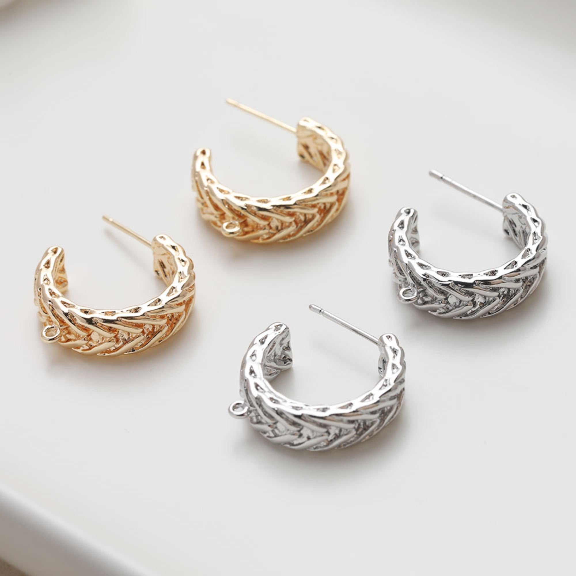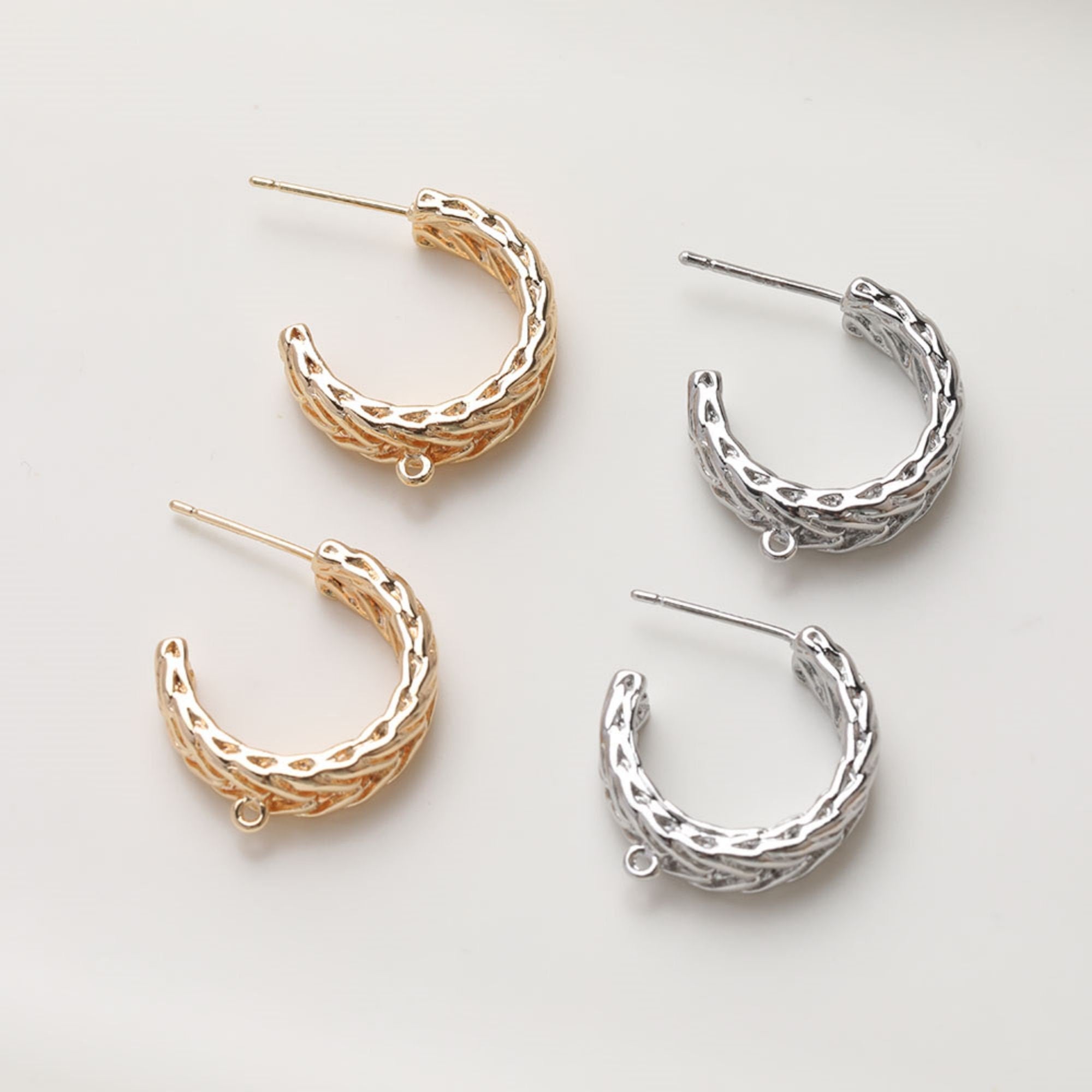 Pendientes de botón en forma de C, chapados en oro de 14 quilates y plata de ley 925, sin níquel, hipoalergénicos, JG044-D0360